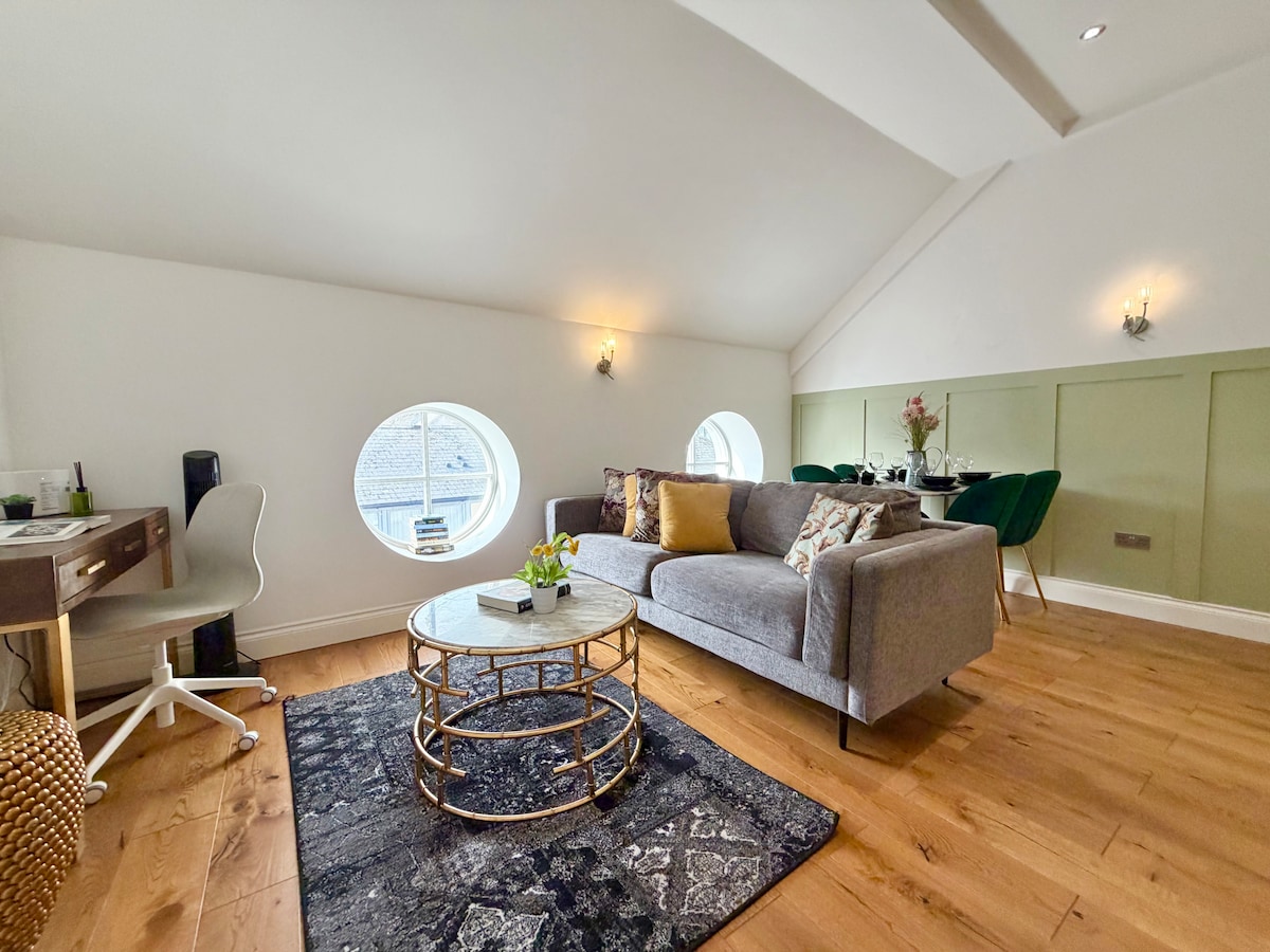 A truly unique 2-floor penthouse apartment situated in the heart of Southwell, benefitting from a completely private and very spacious roof terrace featuring an outdoor sitting area, outdoor TV, BBQ, and a state of the art Hot Tub The vast apartment is furnished to an exceptional standard, plus extremely well equipped, occupying the top two floors of the historic former Cinema. The terrace is finished to an extremely high standard, more like what you would expect to see in a 5-star London hotel suite, the state-of-the-art hot tub allows you views of the cathedral as well as the outdoor TV, the tub is also equipped with mood light and Bluetooth audio.