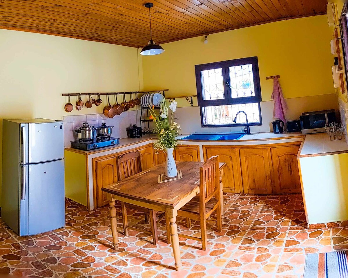 La maison vous offre une immersion locale unique dans un village paisible. Idéalement située à seulement 30 minutes de l'aéroport et proche des commodités accessibles à pied, elle allie le charme rustique au confort moderne. Vous profiterez d'un logement entier et sécurisé, conçu pour la détente, avec des installations de loisirs et une magnifique terrasse sur le toit offrant une vue dégagée sur le palais royal. Location de voiture et service d'une cuisinière privée sont disponibles sur demande.