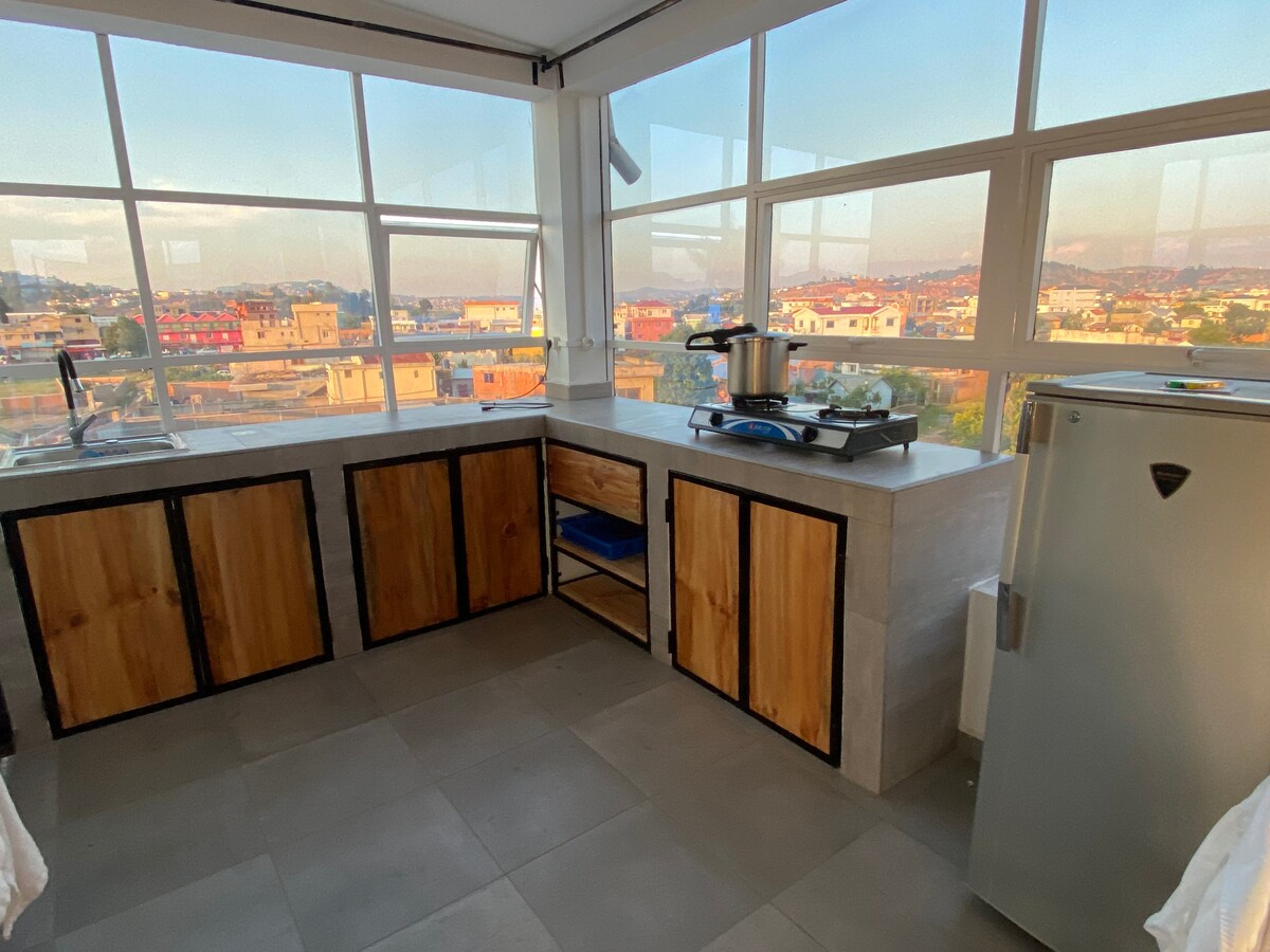 Located in the Panoramic Residence, a living room with equipped open kitchen, three bedrooms and a mezzanine; two bathrooms. Balconies, Wi-Fi, satellite TV, mini bar, Other info. Antananarivo is currently facing water problems, there are 2 reserve tanks in the apartment, but in case of failure of the Jirama it is necessary to manually fill these tanks via a pump in front of the apartment. In the event of a power outage, the apartment does not have a backup generator.