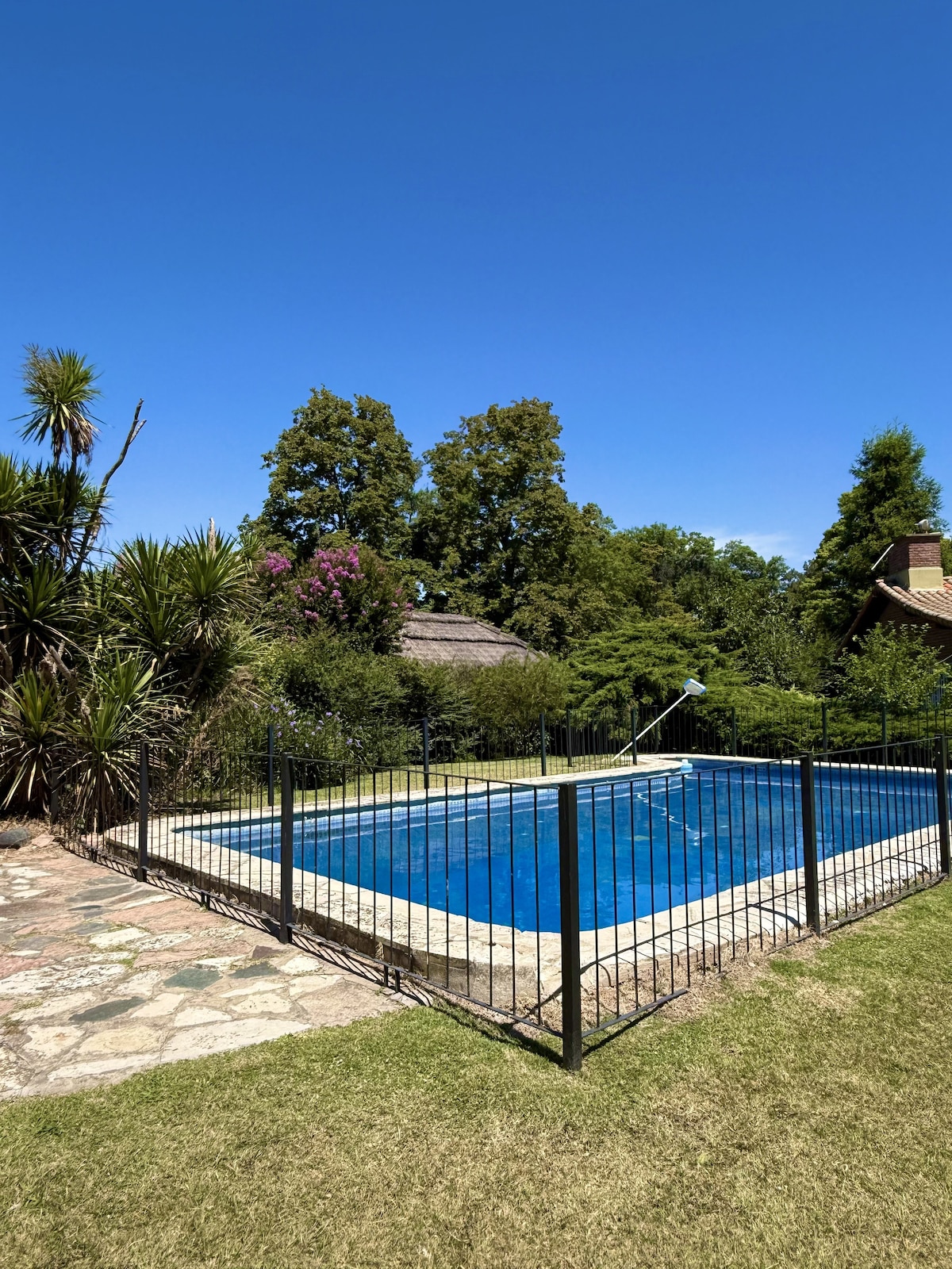 SPECIAL FAMILIES AND GROUPS. Traditional country house surrounded by old trees overlooking the golf course lake just 42 km from Buenos Aires in Zona Norte, Pilar district in a totally safe environment. Due to its large size, it can comfortably accommodate up to 10 adult guests in five bedrooms. It also has a pool, a barbecue, 2 grills, a game room with a pool and items for children and babies. Pets are allowed. To have a really good time and unplug from everything.