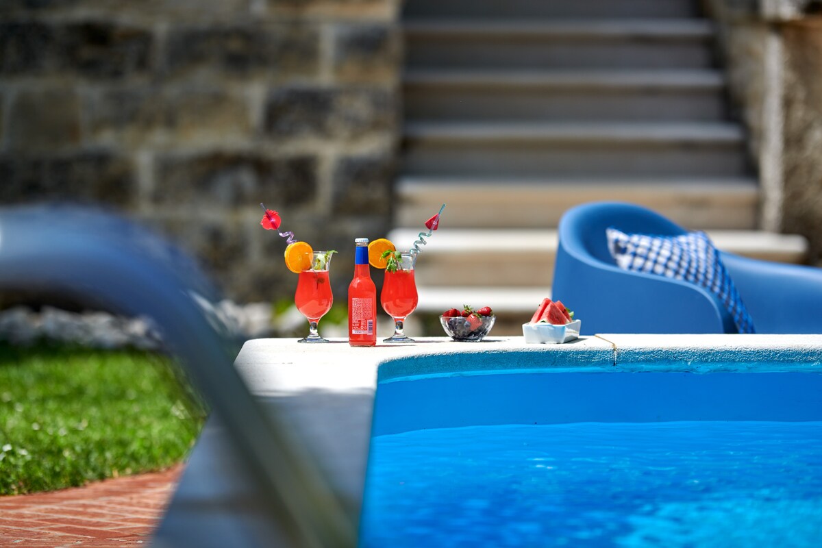 Villa Mabuhay is located in the small Istrian village of Cetinići and can accommodate up to 10 guests. The villa has everything you need for a perfect vacation – a large private pool with three depth levels and a garden, an outdoor kitchen, and plenty of space for sun loungers to enjoy the sun while sipping fresh juices or cocktails. The villa has 5 modern bedrooms (4 with en-suite bathrooms), 3 on the ground floor and 2 on the first floor.