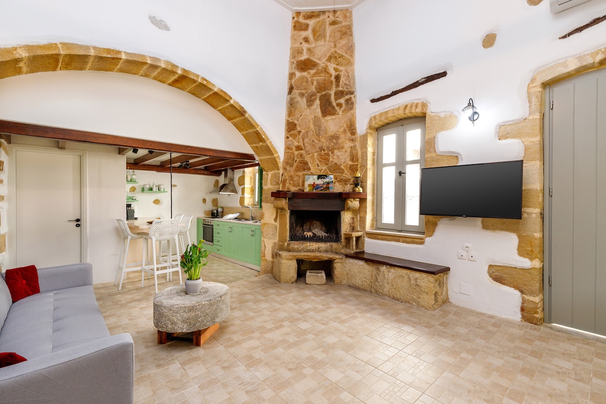 The apartment Anaxagoras consists of an open-plan residential complex and is characterized by an imposing original Venetian arch, which separates the kitchen and living area from sleeping. It has direct access to your (private) garden with barbecue and large dining table with sea view. Everything has been renovated with lots of love for the traditional details in 2017. Here you can inhale a touch of Cretan history in a unique and comfortable atmosphere.