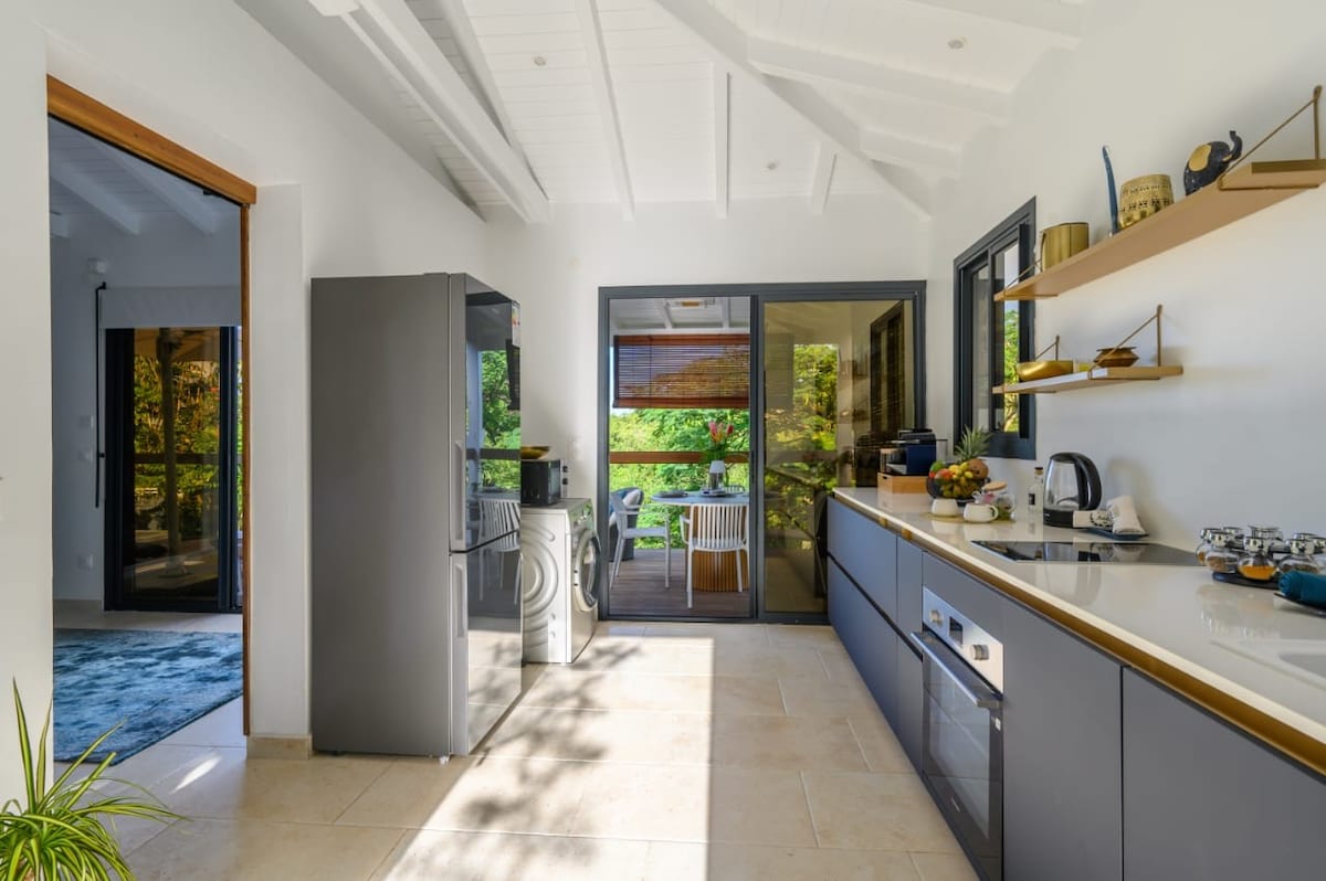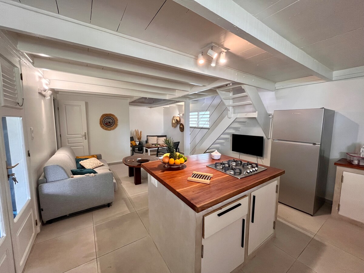 "Le Colibris Amoureux" offers its independent luxury loft, with spectacular views of the lagoon. This place is perfect for those looking to relax while contemplating the sea, Dominica, Les Saintes, as well as the coastline of Marie-Galante. The loft consists of a large living space that includes a living room and fully equipped kitchen, private spa pool, as well as a large air-conditioned bedroom with ensuite bathroom and separate toilet.