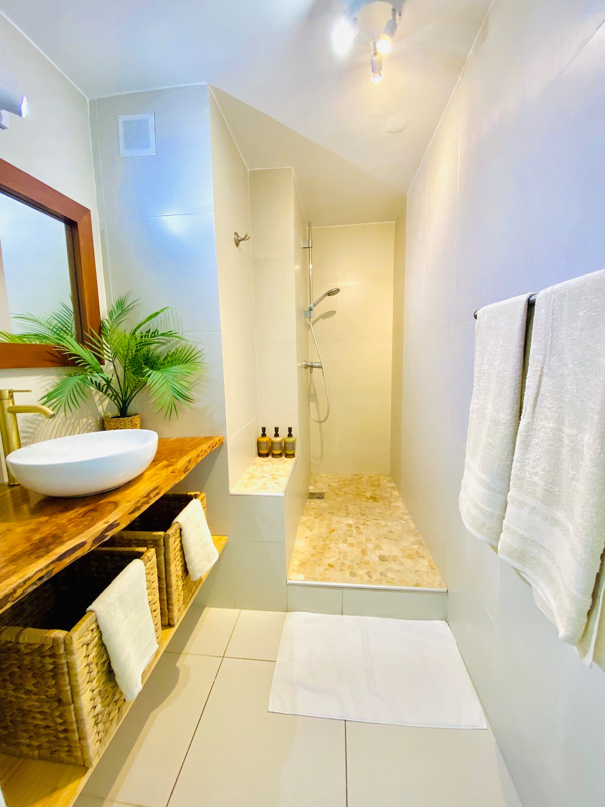 Ce grand studio saura vous séduire par sa vue féerique sur la mer des Caraïbes, son aménagement de grande qualité et l’élégance de sa décoration. Tout a été conçu pour votre plus grand confort afin que vous puissiez y passer un séjour de rêve! Tout est accessible à pied: nombreux restaurants, boulangeries, épiceries, shopping. Parking public gratuit sur place. Vous n’aurez qu’à déposer vos valises et vous laisser bercer par le doux clapotis des vagues et la douceur de vivre des Antilles.
