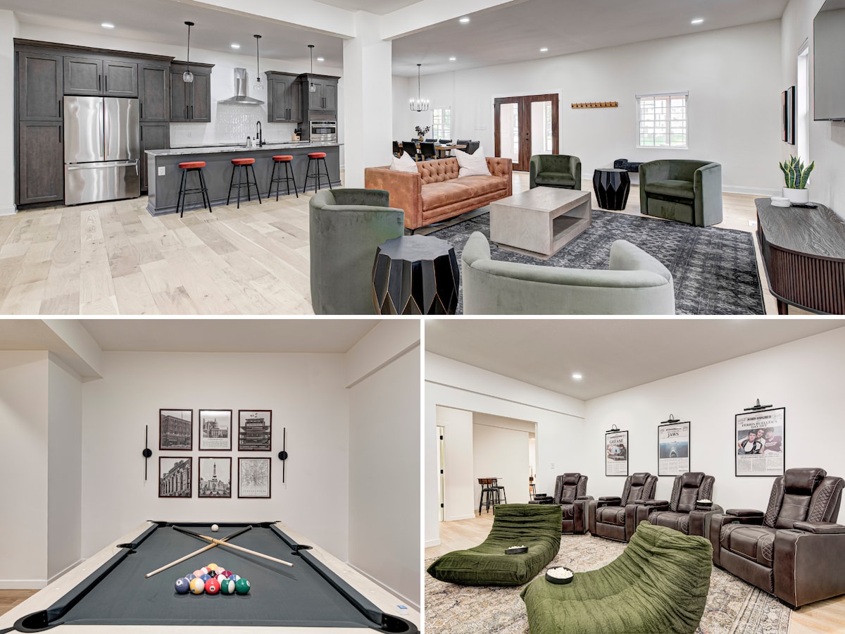 Arcades~Movie Room~Luxe~Sleeps 15~10 Min Lucas Oil