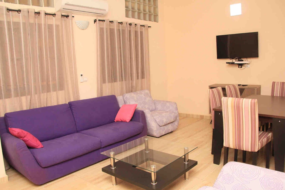 Elyse Guest Housse welcomes you to a modern F4 apartment with all the essential amenities including wifi. Located in Totsi in a quiet area not far from the new administrative center of Lome : GTA(Passport Service, US Embassy, etc.) It is composed of a fully furnished and air-conditioned: a living room, a separate kitchen, 3 bedrooms with double beds and mosquito nets, two bathrooms and two toilets, a garage and a terrace.