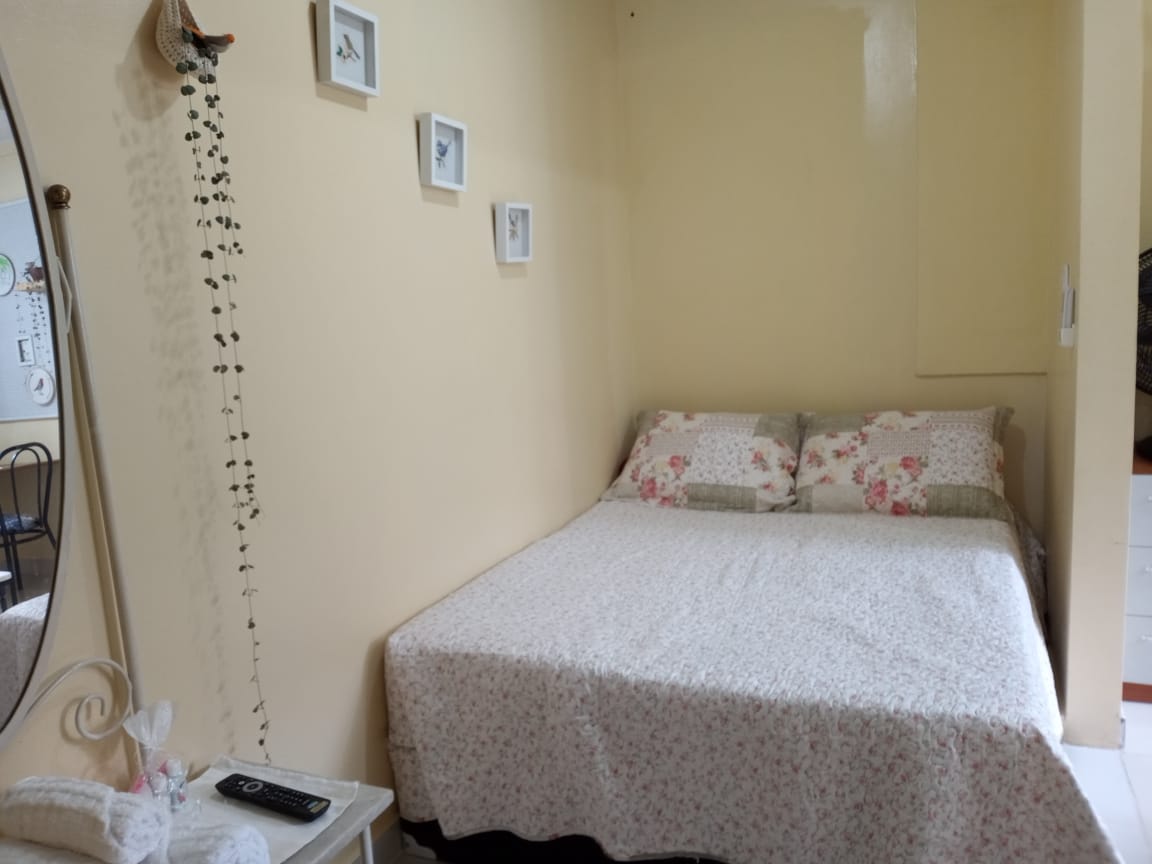 Private apartment for the guest. With 2 spaces divided into a kitchen and a bedroom with a bathroom. The kitchen is complete and well ventilated. The bedroom has 1 standard double bed; TV and air-conditioning. Bathroom with blindex, well lit. It does NOT have hot water (electric shower). Located on the third floor. Access only by stairs. #Check-in: From 3 p.m. to 10 p.m. only. #No VISITORS; PETS; CHILDREN; SMOKING. #There is no garage *Prerequisite: Present the identity document with photo, front and back.