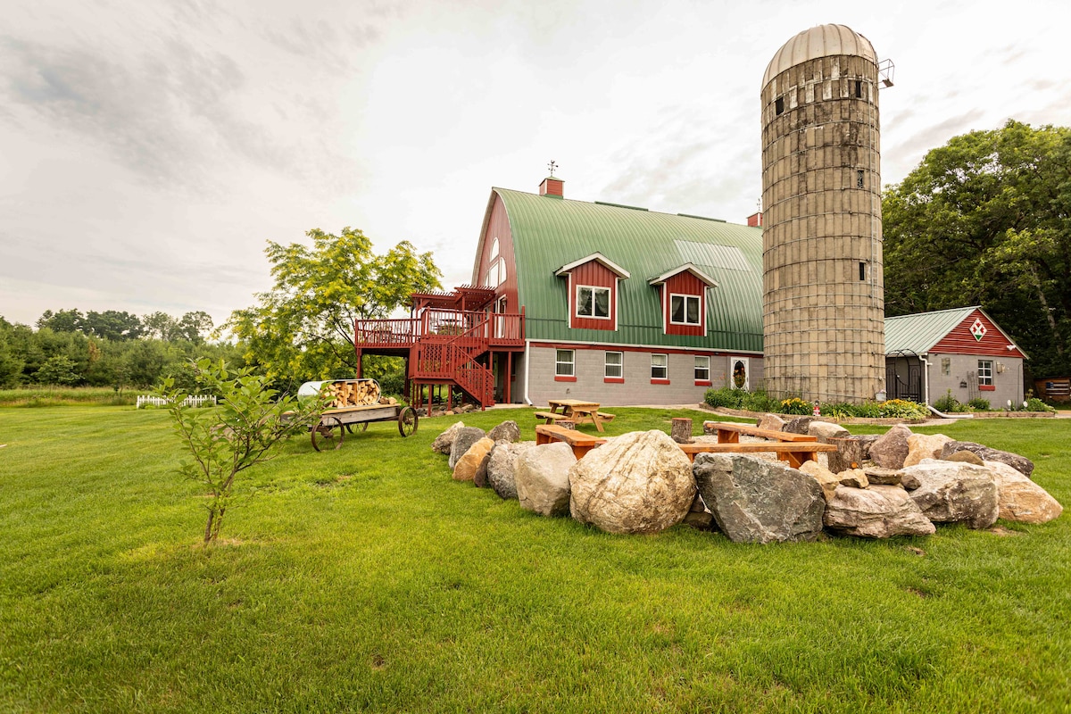 A unique, peaceful setting 10 miles from Wisconsin Dells, this stunningly transformed dairy barn offers the perfect location for family reunions, friend gatherings, corporate retreats or small, intimate events. Sleeping up to 16 guests, you'll have ample space for your family or friends. Step outside and enjoy an authentic farm experience with our chickens and highlander steers. Enjoy quiet, country evenings on the deck watching a spectacular Lake Mason sunset. Book a stay and make memories!