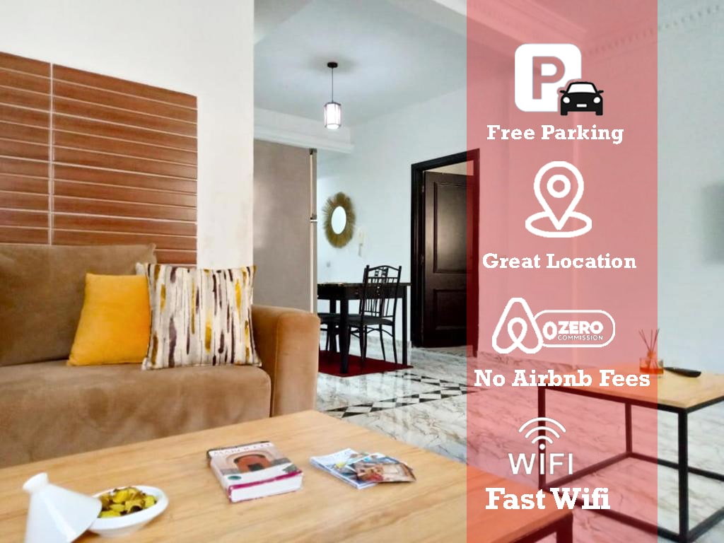 Warm and charming flat in the heart of Essaouira’s old medina! Features 2 bright bedrooms with king-size beds, 2 private bathrooms, a cozy living room, and a small but practical American kitchen. Just steps from souks, cafés, and the beach. Enjoy ultra-fast fiber internet (up to 200 Mbps), perfect for remote work or streaming. ⚠️ Not available for unmarried Moroccan couples.