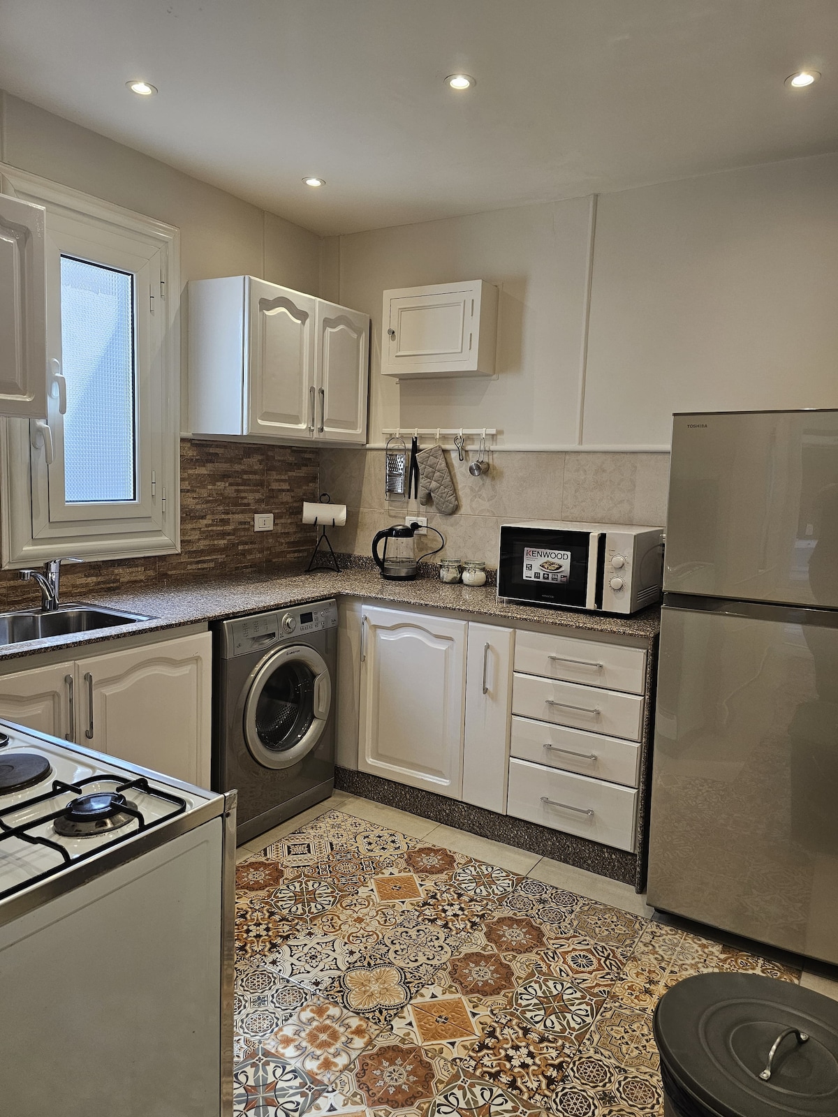 Welcome to your home away from home! Just minutes away from the airport. Our warm spot is adorned with modern comforts, surrounded by greenery, restaurants, supermarkets, kiosks (walking distance), and the most popular malls in Egypt nearby. Everything you need is right here. Your ideal stay awaits!