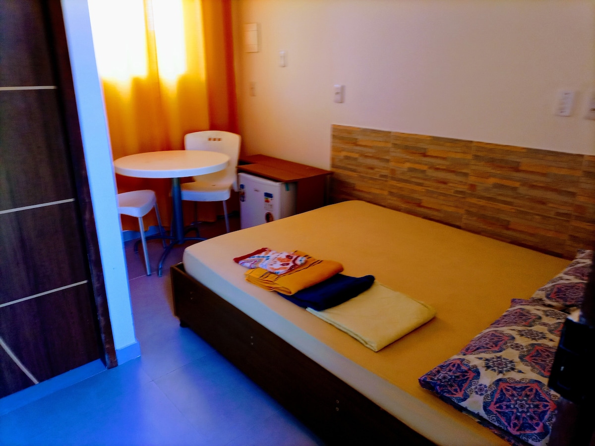A suite é acolhedora, para 2 pessoas em cama solteiro, são 7,20ms, o tamanho . 6ms comprimento por 1'20 largura. Camas uma junto a outra no SENTIDO DO COMPRIMENTO. Gentileza quem não gosta de ambiente pequeno' não allugar. Desde ja agradeço a compreensão. Freegobar. Arcondicionado. Roupa de banho e cama INCLUSAS. Dentro de condominio, a 100ms da praia e 500ms da vila de P Forte. Tudo andando! Próximo de supermercados, restaurantes, barzinhos, farmácias, ponto de ônibus. Estacionamento incluso!
