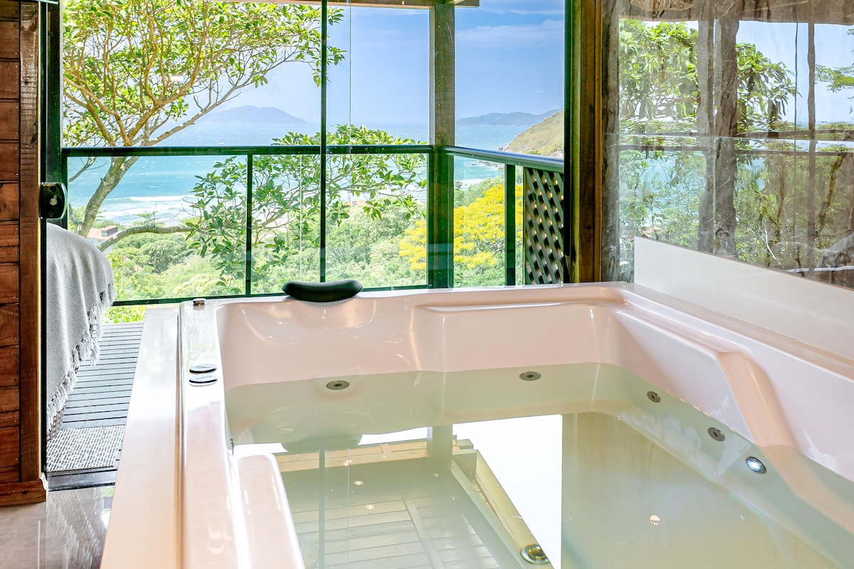 Chalé com Hidromassagem, VISTA MAR e lareira %
