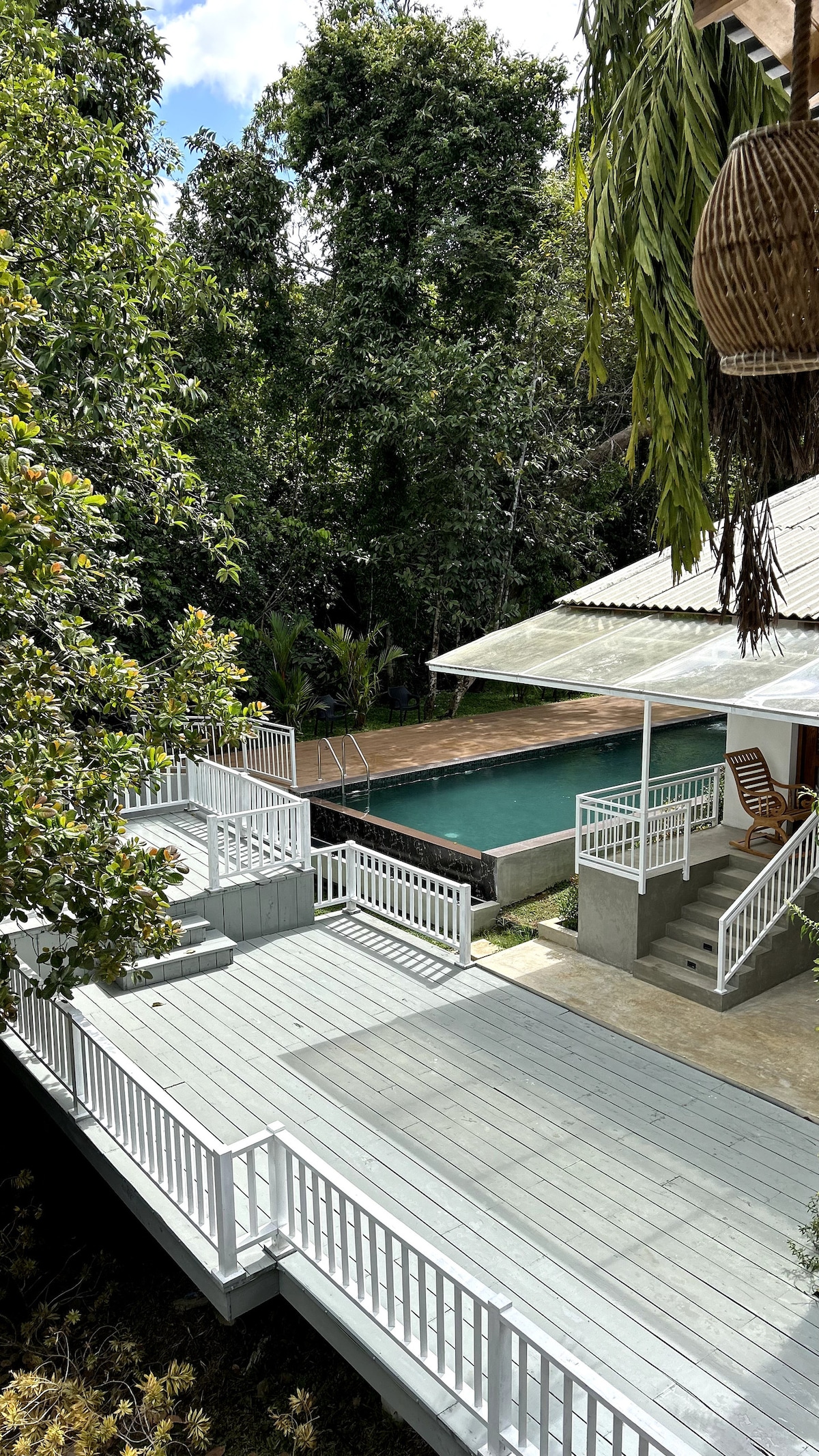 Cocoya is a working coconut and cinnamon plantation. Our house Sama means "Peace" in Sinhalese. It is designed to be a simple, open and spacious plantation home that connects with nature. It features an open living space, a kitchen and direct access to a 17m pool. Upstairs we have a master suite and junior bedroom that share a balcony with plantation views. Both have ensuite open-air showers. Guests enjoy a fully equipped kitchen and exclusive pool access. We do not have air-conditioning.