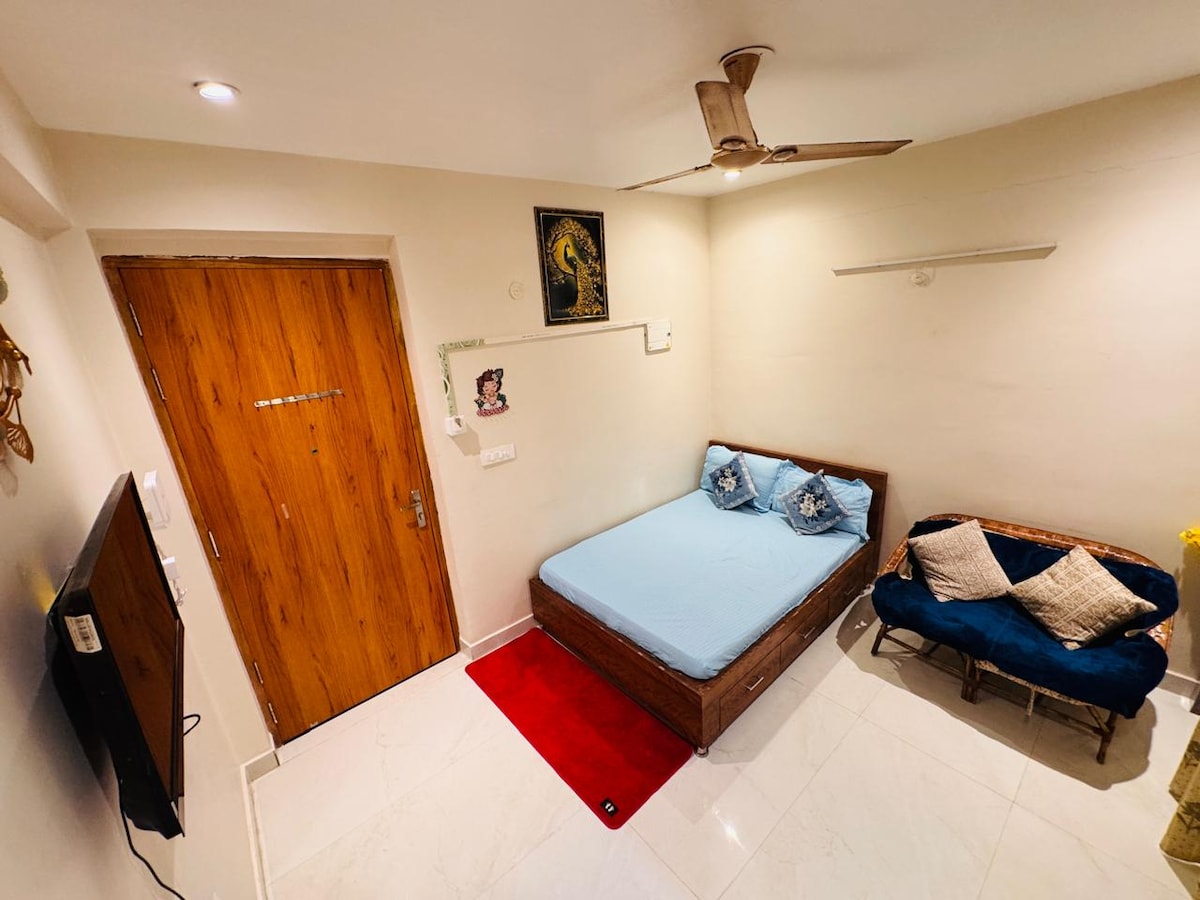 A peaceful 1BHK stay just 1 KM from Prem Mandir đ¸ Enjoy serene views of Prem Mandir and Char Dham from the balcony, along with one of the best sunsets in Vrindavan. The home offers peace, comfort and a dedicated meditation space for a soulful stay. Perfect for families, couples and groups to relax and soak in the divine energy of Braj. đ Note: Two-wheeler đľ is available on rent in the property parking for easy local travel.