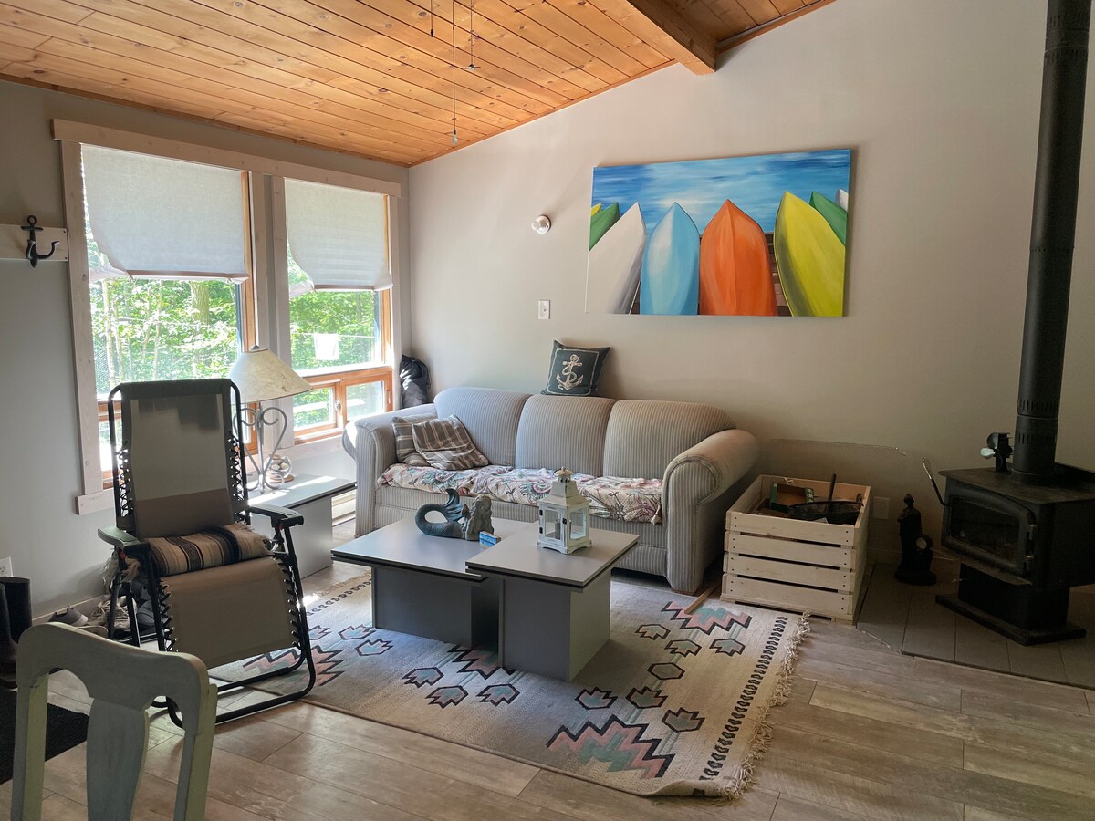 Cute and cozy 1 room cottage with a panoramic view of beautiful Netley Creek. Features a queen bed, bathroom with shower, and a kitchenette with sink, microwave, under counter fridge and hot plate stove. There’s a BBQ grill on the front deck which steps down to the beach and patio with fire pit overlooking the bay. There’s also a deck with 60’ of dock and a boat launch, Kayaks and paddle boards are available for use. Includes wifi and parking. Seasonal rental available from May 1 through Oct 15