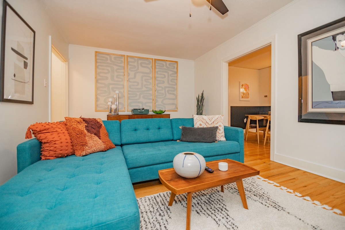 This one of a kind space is all the things you need it to be - inviting, creative, clean, comfortable, and absolutely gorgeous! We've put a ton of thought into everything from the layout to the decor to all the things that make for a great night of sleep and a splendid cup of coffee. You'll love this space! Please note the backyard and laundry room are spaces shared with other guests. Both have locking doors between them so all interior space is private.