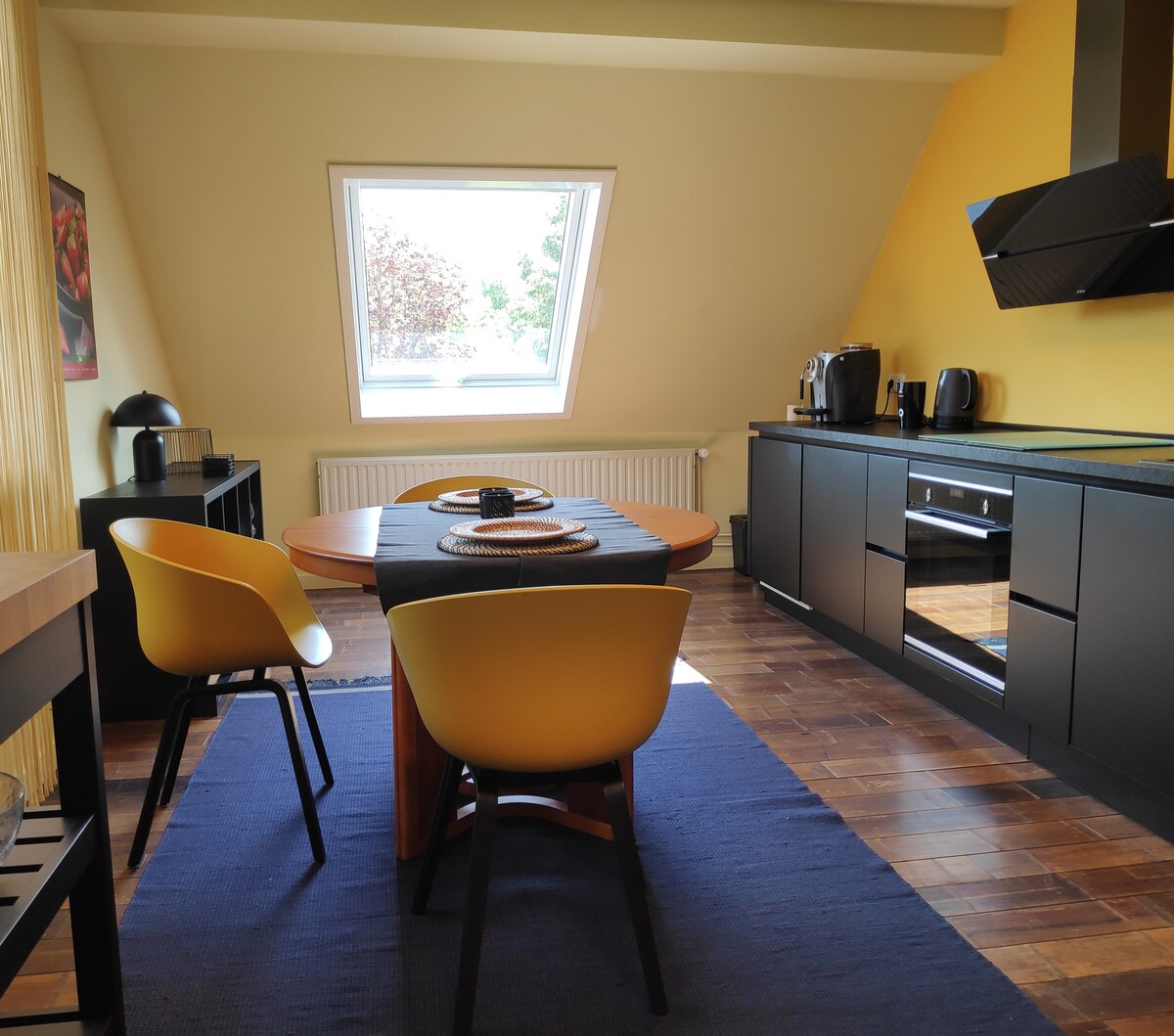 Experience an unforgettable vacation in our charming attic apartment. Immerse yourself in an oasis of tranquility and coziness. We offer two spacious bedrooms each equipped with a comfortable double bed, an open living and dining area, a fully equipped kitchen and a balcony with lounge furniture. Your car can conveniently park in the free parking lot and for bicycles or motorcycles we offer a safe parking space. Great for hikers and bikers.