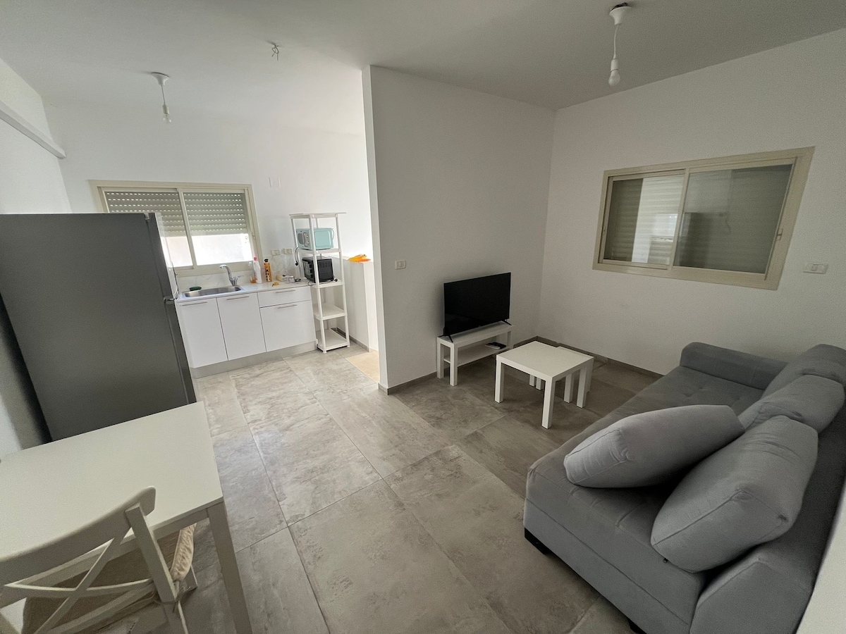 We invite you to stay in our new, beautifully designed guest unit, just a short walk from the stunning Shavei Zion beach. This private retreat includes a fully equipped kitchen, cozy living room, comfortable bedroom, modern bathroom, and a spacious balcony with a dining and seating area. Enjoy high-speed Wi-Fi, TV, and cable channels. Late check-out available (subject to availability). Perfect for couples and young families (up to 4 guests). We look forward to hosting you!