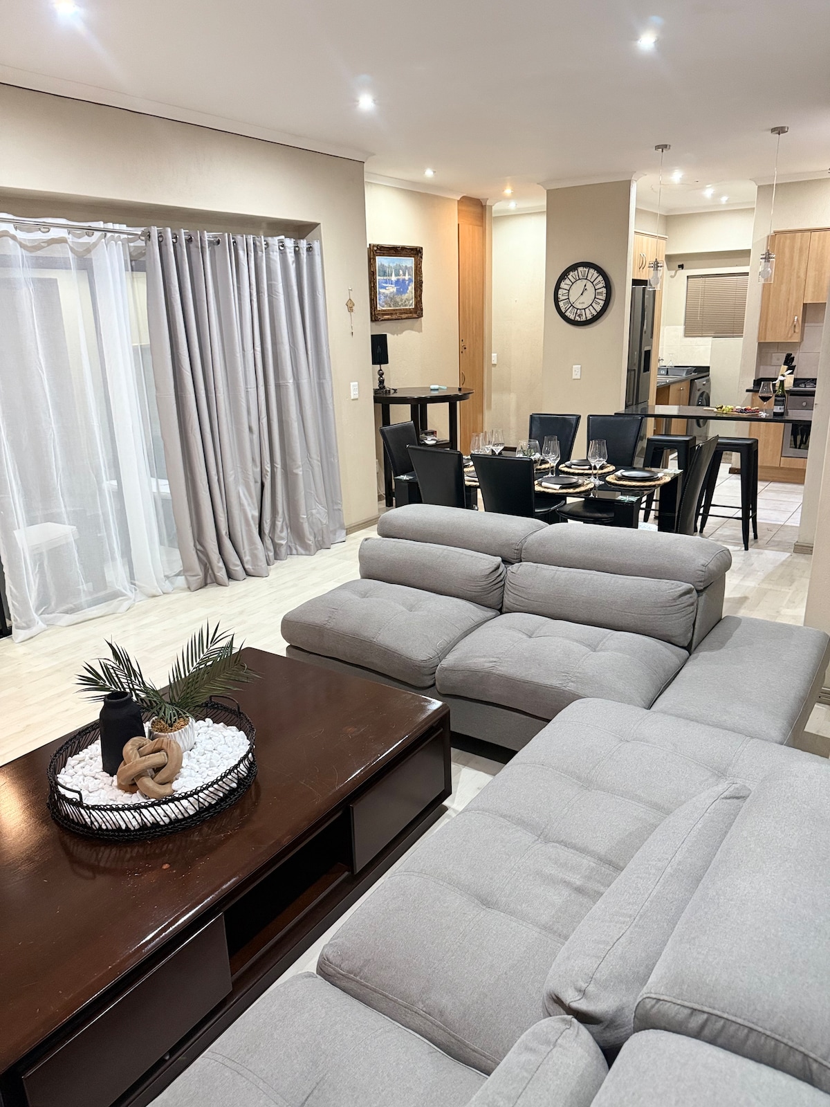No load shedding problems, there’s a back up power and gas stove. Fully furnished house with a welcoming kitchen overlooking an air conditioned living/dining area, 3 bedrooms, 2 full bathrooms. The main bedroom is huge with air conditioning and ensuite full bathroom, it can accommodate an extra bed for a child. For Netflix/ShowMax bingers there's unlimited fast Fibre internet and DSTV. For outdoor lovers there's a child-friendly garden and pool. Big discount for long term guests!