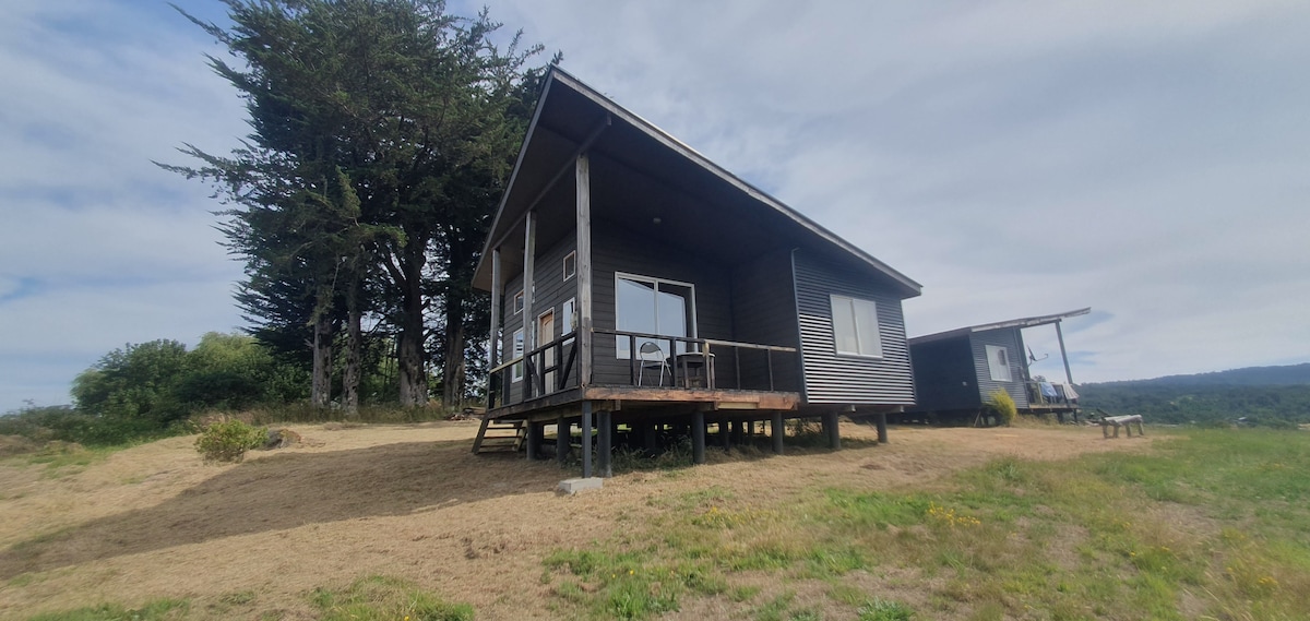 A private, cozy cabin with everything you need to enjoy and connect with nature. Located 350 meters from Route 5 South, it will allow you to explore and get to know the beautiful island of Chiloé. We also offer outdoor hot tub service (additional value) On the premises there is another cabin, family, for 4 people, both maintain their privacy. Also published on this platform: https://www.airbnb.com/slink/2E2dgR6y
