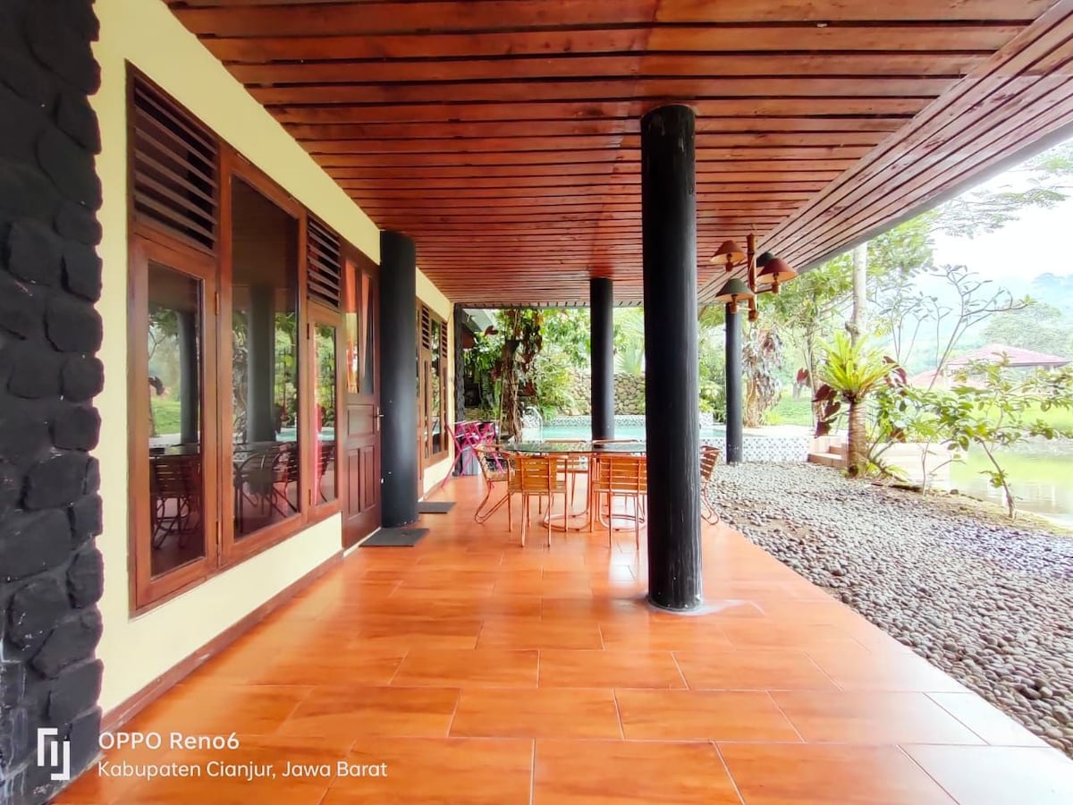 Riverside villa, perhaps the most appropriate word we call.Located right on the edge of the Cileungsi river which is still a river flowing from the Leuwihejo waterfall,one of the favorite destinations for tourists both domestic and foreign.Located at Cibadak Sukamakmur Sentul Bogor,only 1.5 hours from downtown Jakarta, making this villa an alternative vacation destination for residents of the capital city and its surroundings. However, it's also dbest choice for out-of-town and foreign tourists.