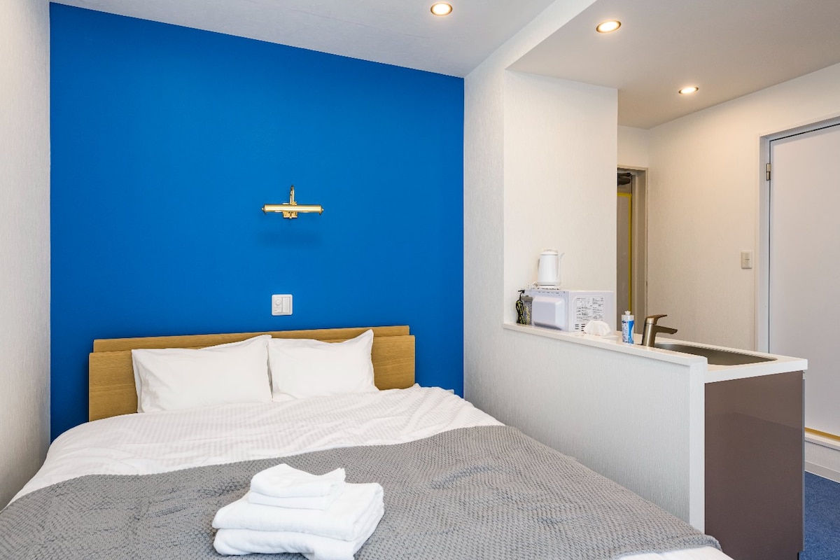 A serene, minimal loft just one stop from Shibuya and Roppongi—perfect for solo travelers or focused remote work. Featuring fast Wi-Fi, an Aeron chair, and a compact double bed (150×210cm)—ideal for one, cozy for two. The glass bathroom and sleek concrete walls give it a modern edge (note: some winter condensation—just run the bathroom fan). While there’s no closet, the space fits four large suitcases and includes a hanging bar and ten wall hooks to keep things tidy.