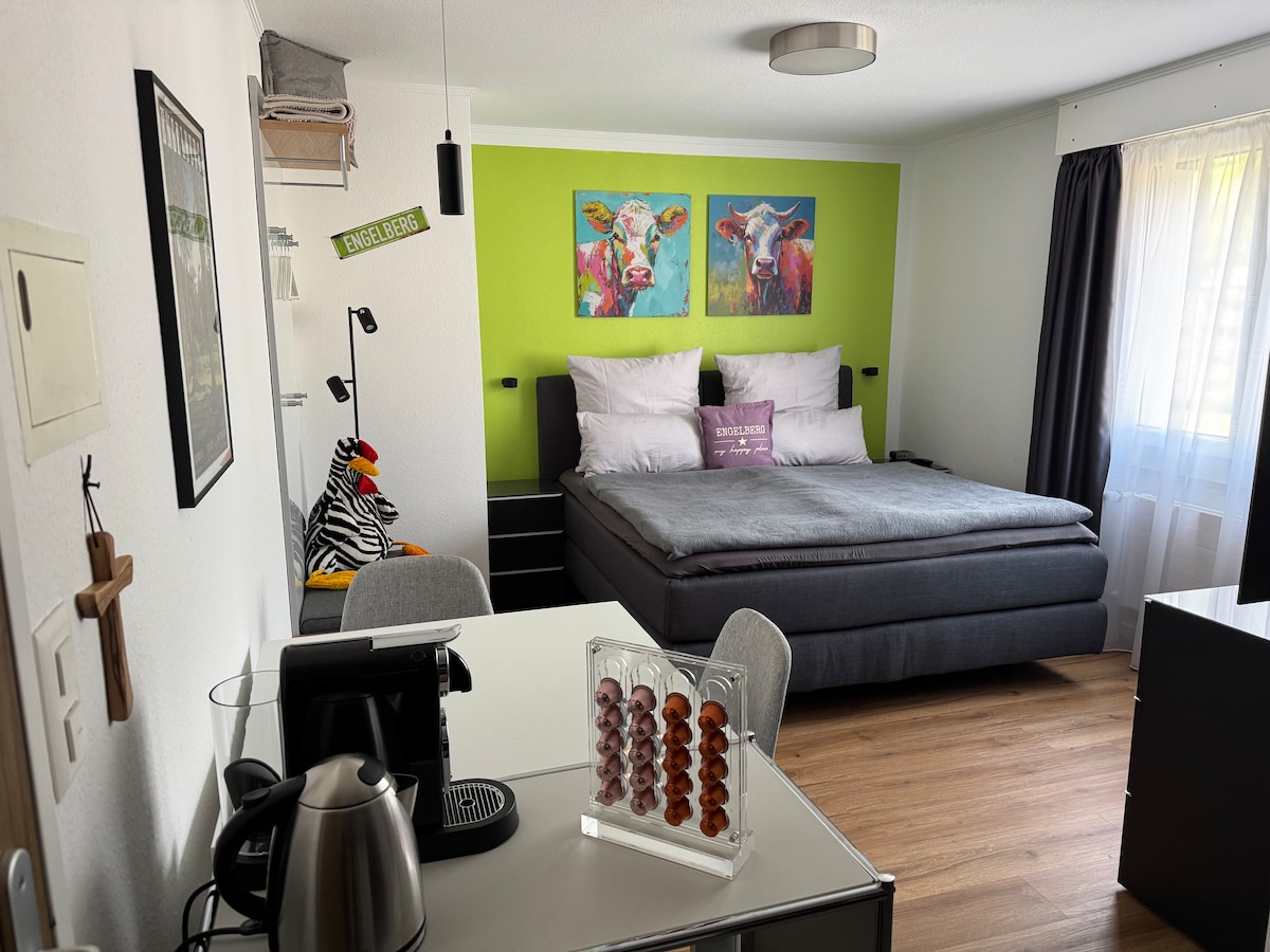 Willkommen bei Greenspot Apartments - Cozy Living, und diesem lichtdurchflutetem Studio mit atemberaubendem Blick auf den Titlis, mit gratis Parktplatz, das dir für einen tollen Aufenthalt in Engelberg alles bietet: -einfache Anreise, Tiefgaragen-Parkplatz -24h Check-in -gut ausgestattete Küche -King-Bett 180x200 -Schlafsofa -Kinderbett (auf Wunsch) -Wifi & Smart-TV -Nespresso-Kaffee & Tee -Waschmaschine -5min zur Piste -2min vom Bahnhof entfernt -direkt im Zentrum