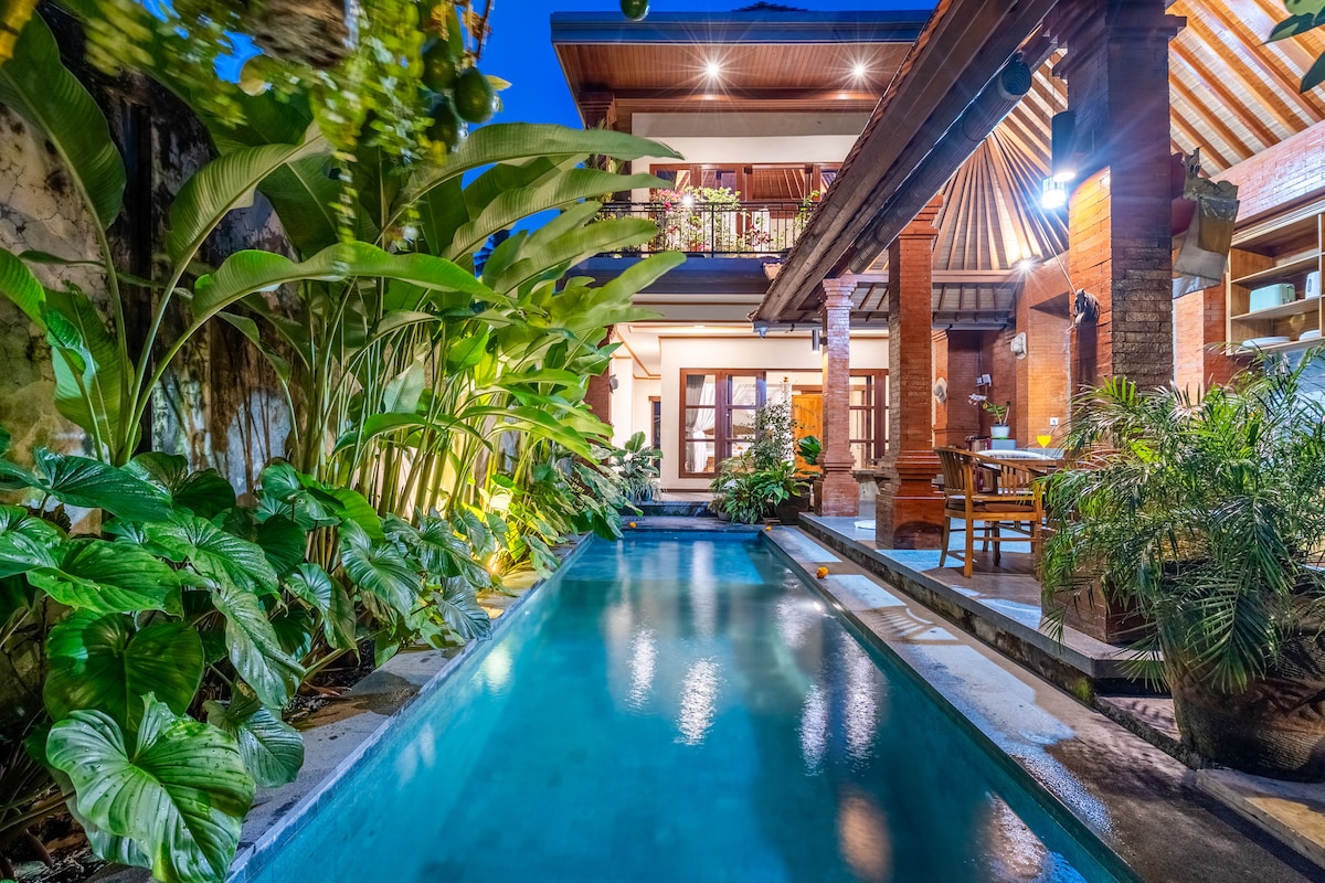 Welcome to Villa Dwipa ☀️ A place where you can indulge yourself in the beauty and luxury of a completely private Bamboo Villa and all it’s facilities surrounded by peaceful nature 🍃 From a dive in the private pool, watching a movie on the drop down cinema screen and having a neighbor-less party in the living room to spending peaceful quality time, cozily unwinding on the balcony and everything in between, whether you're friends or lovers, we guarantee you a good time 😊