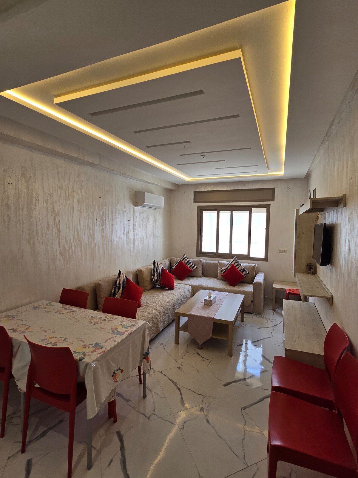✨The Panoramic apartment in the Blue Gardens is characterized by its modern and elegant design, each element being carefully designed to guarantee you an unparalleled experience ✨Its central location ✅ Apartment with panoramic sea views and close to: ✅ 1 min from Martil Beach 🏖 and its famous corniche ✅ 5 min to Cabo Negro Beach 🏝 ✅ 4 min from Ikea and KFC 🍗 ✅ 6 min from Marjane and McDonald's 🍟 ✅ 1 min from restaurants, cafes, shops