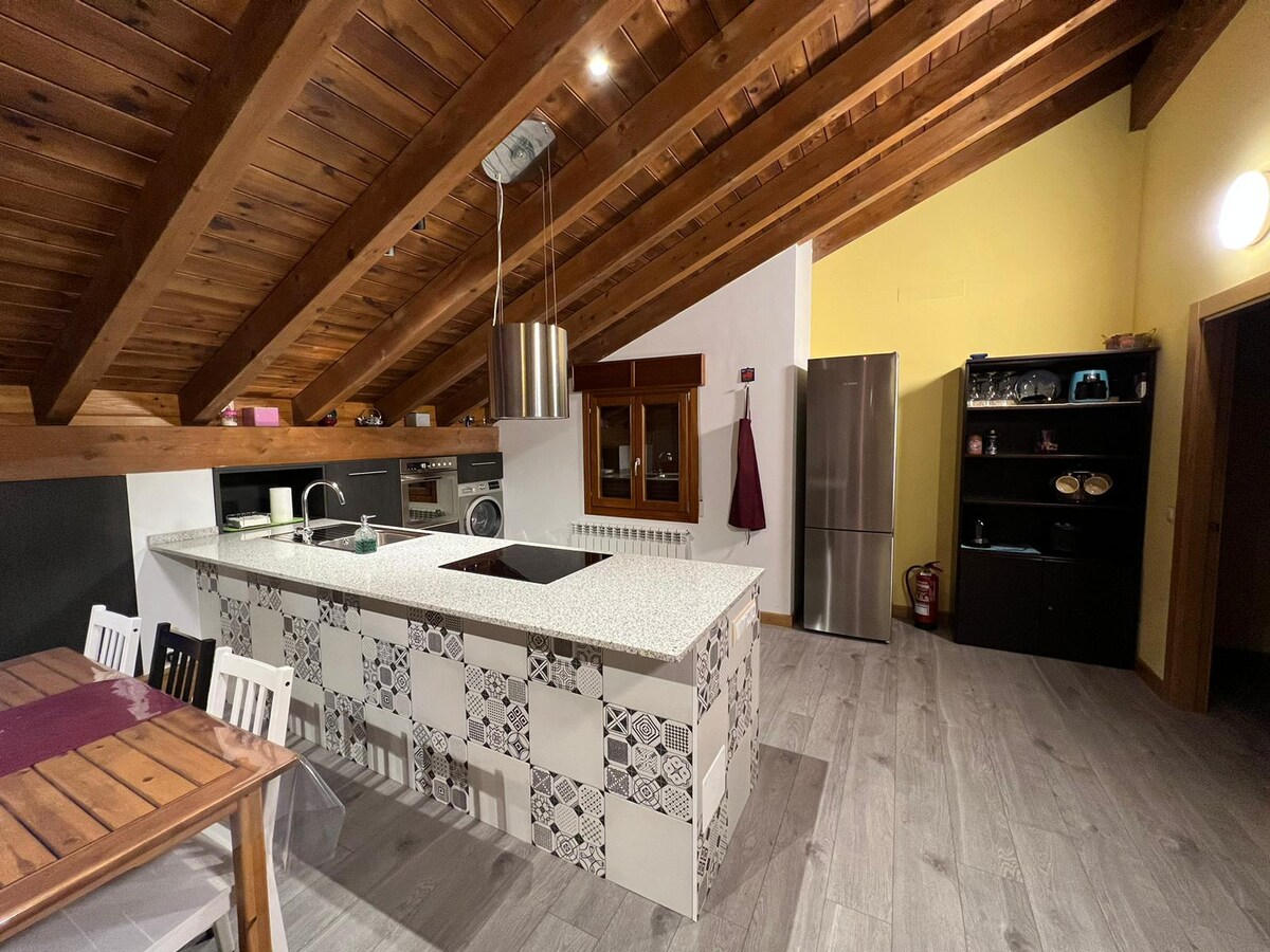 Fantastic attic penthouse, spacious, with lots of light and views of a natural environment that encourages you to enjoy. Close to Logroño and wonderful places to visit and enjoy. In a village with swimming pools, a gym, a municipal sports center, a ferrata, an open fronton, and green walks to the Leza gorge or the nearby mountains. Bars, grocery stores, and butcher shops. Second floor, no elevator.