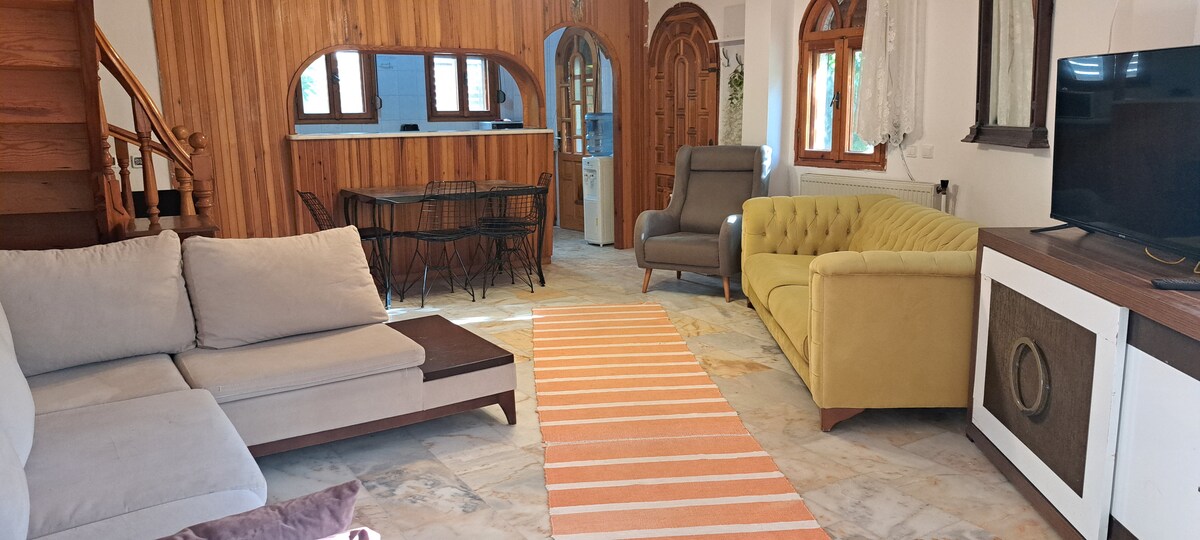 It is a perfect option for those looking for a comfortable stay away from the chaos of the city. Our detached villa, located just 5 minutes from the airport, is ideal for both short-term stays and long vacations. In our house; • 2 spacious bedrooms • A bright living room • Equipped kitchen • Barbecue corner • Private garden • Unlimited Internet • Air conditioners With the advantage of its location, enjoy the privilege of both proximity to the airport and comfortable accommodation in a quiet and safe neighborhood.