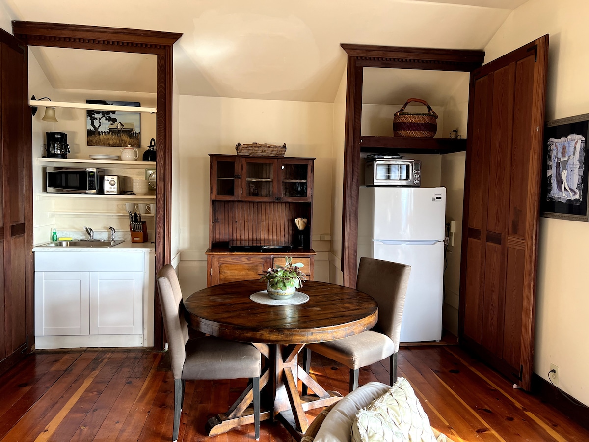 Cozy rustic converted barn/tack room surrounded by oaks, firs and pines located on our lower meadow. Lavender rows blooming below the paddock fence fragrant the air during the summer months and available for harvesting. Outdoor seating to enjoy the mornings, a little ocean view and sunsets. The Navarro Beach estuary is just a few miles away for walking or wading. No Wifi creating a true country experience which we think you'll enjoy offering solitude, disconnecting and reinventing.