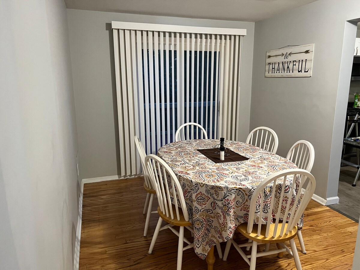 Newly renovated house in heart of Pittsford. 3 Bdrms & sofa bed ! Each bdrm has full bath, TV & Ceiling fan. 1st flr laundry & 1/2 bath. WiFi. New appliances. Long driveway with parking for 6 cars, RV or even 18 wheeler! Bottled water, Reg/Decaf Coffee & Tea provided. Walk/Bike trail across street. 5min drive to Pittsford village, Bushnell’s Basin, East View Mall, Colleges (Nazareth and St. John Fisher), Golf courses, Wegmans Grocery store, shopping plaza’s and restaurants.