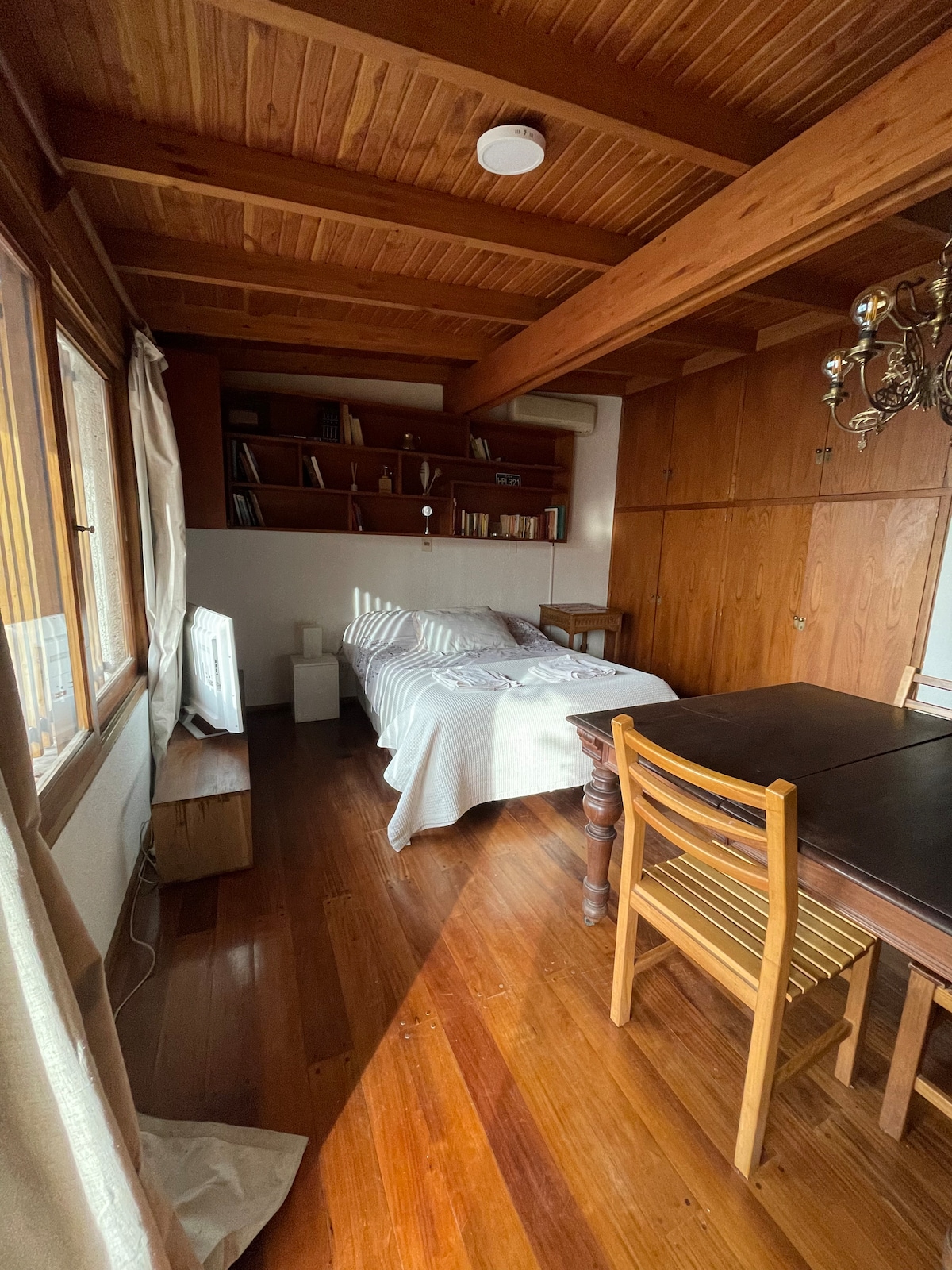 Monoambiente para 3 personas con jardín y parrilla. Cuenta con una cama matrimonial, una cama chica (como para niños) y baño con ducha y bidet incluido en inodoro. Wifi. La zona es silenciosa y tranquila. Se encuentra a 2 cuadras del centro, a 1 de calle Arístides Villanueva (zona de bares y restoranes más conocida de Mendoza), supermercados, bancos, lavandería y otros sitios de interés. Tiene buena ventilación e iluminación. Se encuentra a 6 cuadras del Parque San Martin.