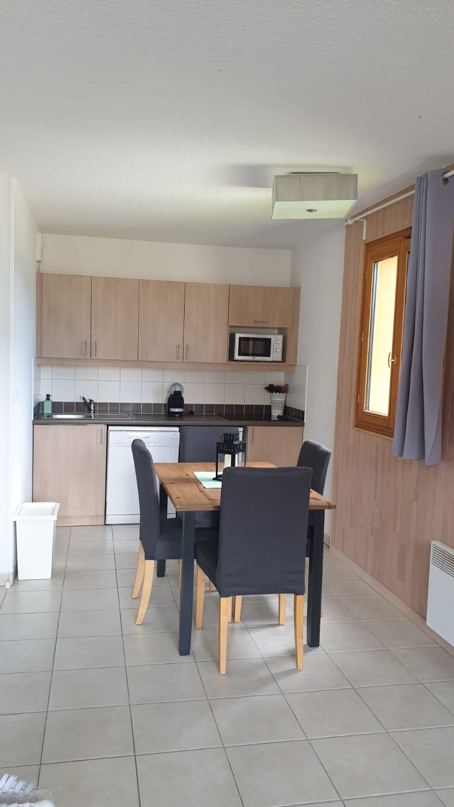 Fully equipped apartment for 6 people in the heart of the resort of Réallon in the Hautes-Alpes (Le Relais building) 26 m2 two-room apartment on the first floor (elevator) East-facing balcony with unobstructed views of the valley and mountains surrounding Lake Serre Ponçon One bedroom with a double bed A sleeping area with bunk beds A sofa bed in the main room Entrance with closet and toilet (separate) Bathroom with shower and towel dryer radiator Equipped kitchen