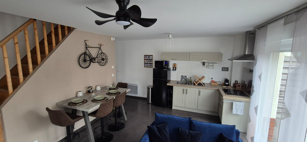 70 m2 house located in the city center of Méricourt. Bus stop and local shops (bakery, Intermarché, distributor...) By car: 10 min from Bollaert Stadium and Louvre Lens Museum. 15 min from Lens and Arras train station. 15 min from the Hénin Beaumont shopping area with the biggest brands. 15 min from the Canadian Memorial of Vimy, 30 min from Lille, Mauroy stadium. 10 min from Liévin indoor stadium 50 m from Paris via the TGV departing from Arras and Lens station. Netflix, internet.
