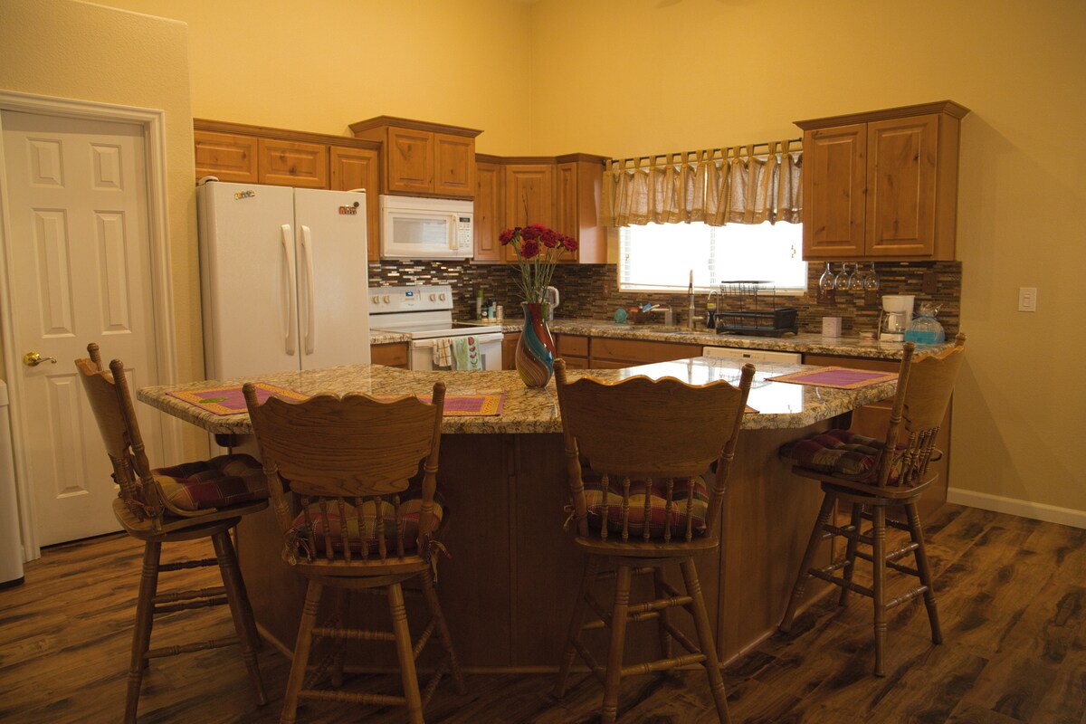 This newer guesthouse is a clean, comfy hideaway! A hidden gem under bright starts for peace and quiet! There are even free range, friendly chickens (rooster included) for amusement. The entire 1 bedroom is yours for private comfort. We offer a separate entrance, Full kitchen/bath, laundry, Wi-Fi, TV with Netflix/Hulu, peaceful backyard, BBQ patio, designated smoking area, and parking for ATV's & trailers. Only a short distance from Mesquite, NV. Close to casinos, restaurants, & golf courses