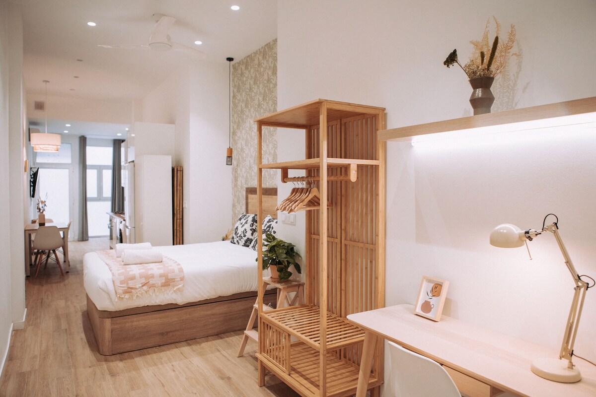 Stylish, bright and spacious one-bedroom apartment perfectly located in the heart of Valencia’s Old Town, on a peaceful street in the elegant La Xerea neighborhood — just 400 m from Valencia Cathedral and a 2-minute walk from the Turia riverbed park. Beautifully decorated and equipped with all modern comforts, it’s the ideal home for a couple, digital nomads, or a small family looking to enjoy a relaxing and authentic stay in Valencia.