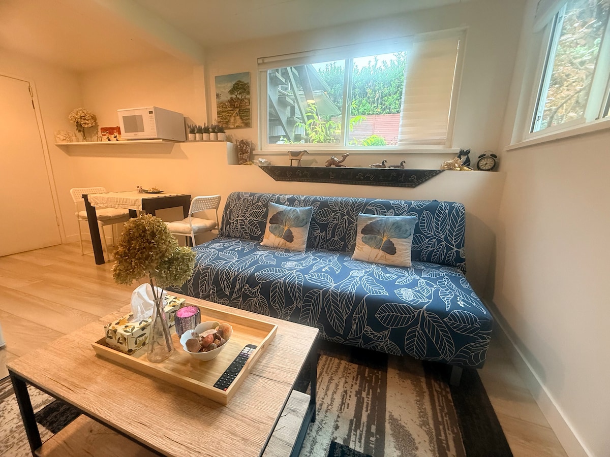 + Private entry, living room, bedroom, Kitchenette, bathroom with nothing is shared + Quiet and cozy garden suite that feels just like home + Excellent indoor ventilation and natural lighting + Spacious, green, and private backyard for relaxation + Only 10 minutes to forest trails, water sports, winter skiing, and shopping + Just 20 minutes to downtown Vancouver or nearby cities + Perfect for individuals or couples