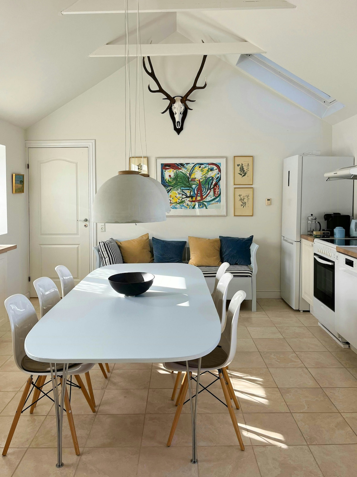 Just a stone's throw from Vejlaby Fed Strand Camping and Funen's best beach, our cottage offers plenty of quality time and play. Here you can enjoy the tranquility of the enclosed garden with sun terrace, barbecue, pergola, football goal, fire pit and 2 annexes, one of which has 2 beds. The cottage is furnished with an open kitchen/living room, 2 bedrooms, one with a large 210*210 bed and bunk bed in extension, the other with a double bed. From the living room, there is access to a large, bright pergola. The pergola is cold in the winter months.