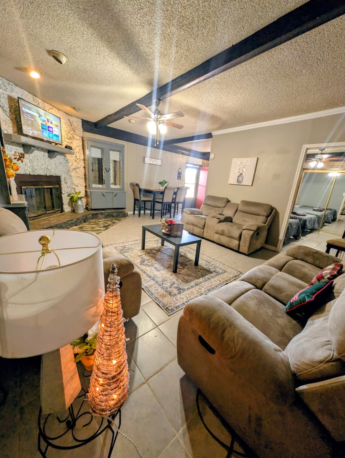 Hacienda Hideaway , Your Private Spanish-Style Retreat! Spacious 3-beds, 2-baths getaway featuring a swimming pool & outdoor dining area. This home offers fun for everyone with a foosball table, board games, & smart TVs equipped with streaming services like Hulu, Netflix etc. Enjoy cooking in the fully stocked kitchen with both Keurig & drip coffee pot, cozy up on the oversized sectional for the perfect movie night in. Experience comfort, charm, and convenience all in one serene setting!