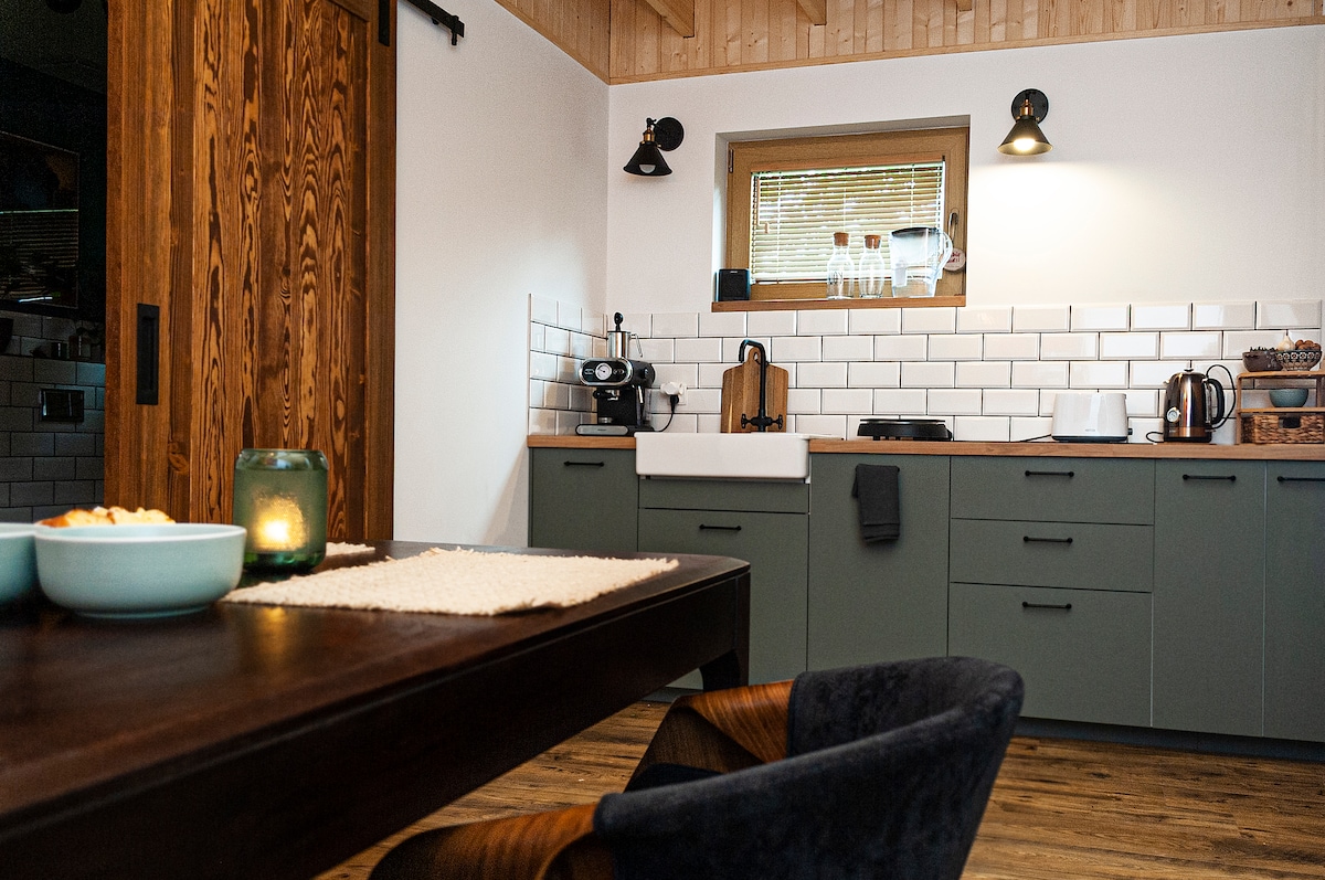 The Bielawy House has been specially designed for relaxation. It features a modern, chlorine-free (active oxygen) heated pool with a massage bench, a 6-person jacuzzi, and a high-quality sauna. The spacious garden includes a playground, ping pong table, monkey bars, trampoline, and volleyball court! Inside the house, guests can relax by the fireplace, play table soccer, Xbox, or poker. The well equipped kitchen provides ideal conditions for cooking. Nearby, there are beautiful lakes and forests