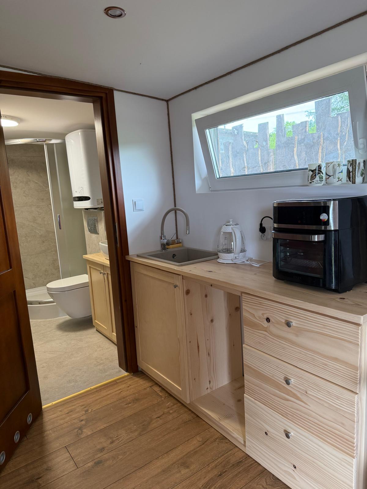 Woodland House 2 to idealne miejsce dla osób pragnących odpocząć w otoczeniu przyrody, a jednocześnie mieć łatwy dostęp do największych atrakcji Bieszczad. To doskonała propozycja dla osób ceniących prywatność, naturę i wygodę. Domek oferuje jasny salon, w pełni wyposażoną kuchnię, sypialnię, łazienkę oraz taras z widokiem na otaczający las. Do dyspozycji prywatny parking, miejsce na ognisko, sauna i leżaki do relaksu. Wnętrze urządzono z dbałością o konfort gości.