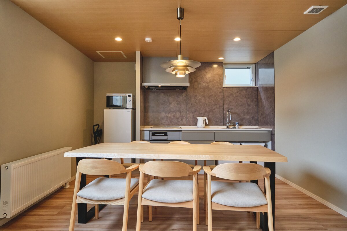 Discover a “Hidden Retreat for Adults” — a stylish Stayable Sauna opened in 2025. This spacious unit hosts up to 8 guests, perfect for groups, families, couples, or friends. Enjoy a private Finnish-style sauna for two anytime during your stay. The space offers free Wi-Fi, parking, AC/heating, kitchen essentials, and a washer & gas dryer, ideal for long stays or workations. Check‑in is via the tablet at the entrance. As this is a wooden building, sound may carry. Thank you for your understanding.