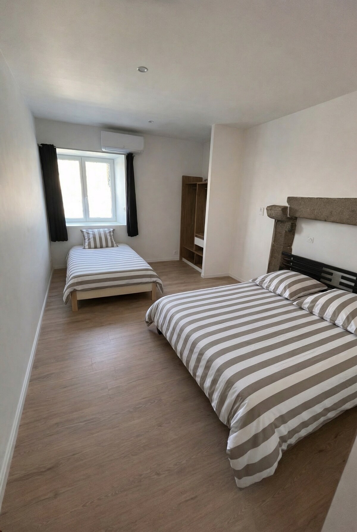 Welcome to your next vacation spot in Brittany. With family, couples, friends or colleagues, come and relax with us! You can enjoy a large friendly kitchen, a large living room with a TV, a bathroom with a spacious shower and a bathtub, a toilet, a bedroom with a double bed and a single bed and a second bedroom with a double bed. You can also enjoy a large garden of more than 3000 m2 with garden furniture and barbecue