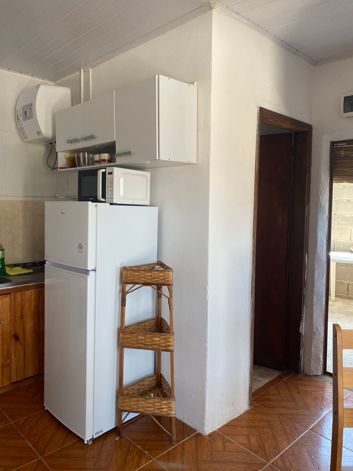 Comfortable cabin. Exclusive garden with barbecue, trees and plants. Front deck with large window and another at the kitchen entrance. Double bed with mattress to be removed. Full bathroom with a spacious shower cabin. Kitchen and gas oven, refrigerator with freezer, microwave, all necessary utensils. Natural light in all spaces. Air conditioning. Very bright. It is located on an accessible street 8 blocks from the beach with a nearby bus stop. Bed linen and towels are included.