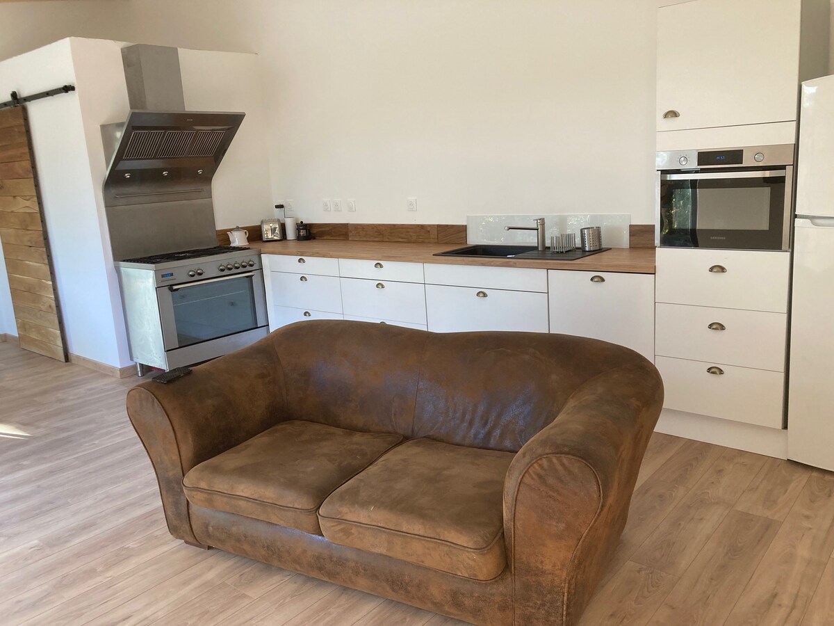 Relax in this quiet and stylish accommodation. Modern two-room apartment in a recent building with a bedroom, a double bed, a desk, a living room, an open kitchen, bathroom with toilet and washing machine The kitchen is fully equipped (fridge, microwave, hob, hood, oven, dishwasher and toaster. A coffee and tea bar area. The living room features a 2-seater leather sofa bed, TV, Netflix and high-speed Wi-Fi. Free parking. Access to all amenities on foot