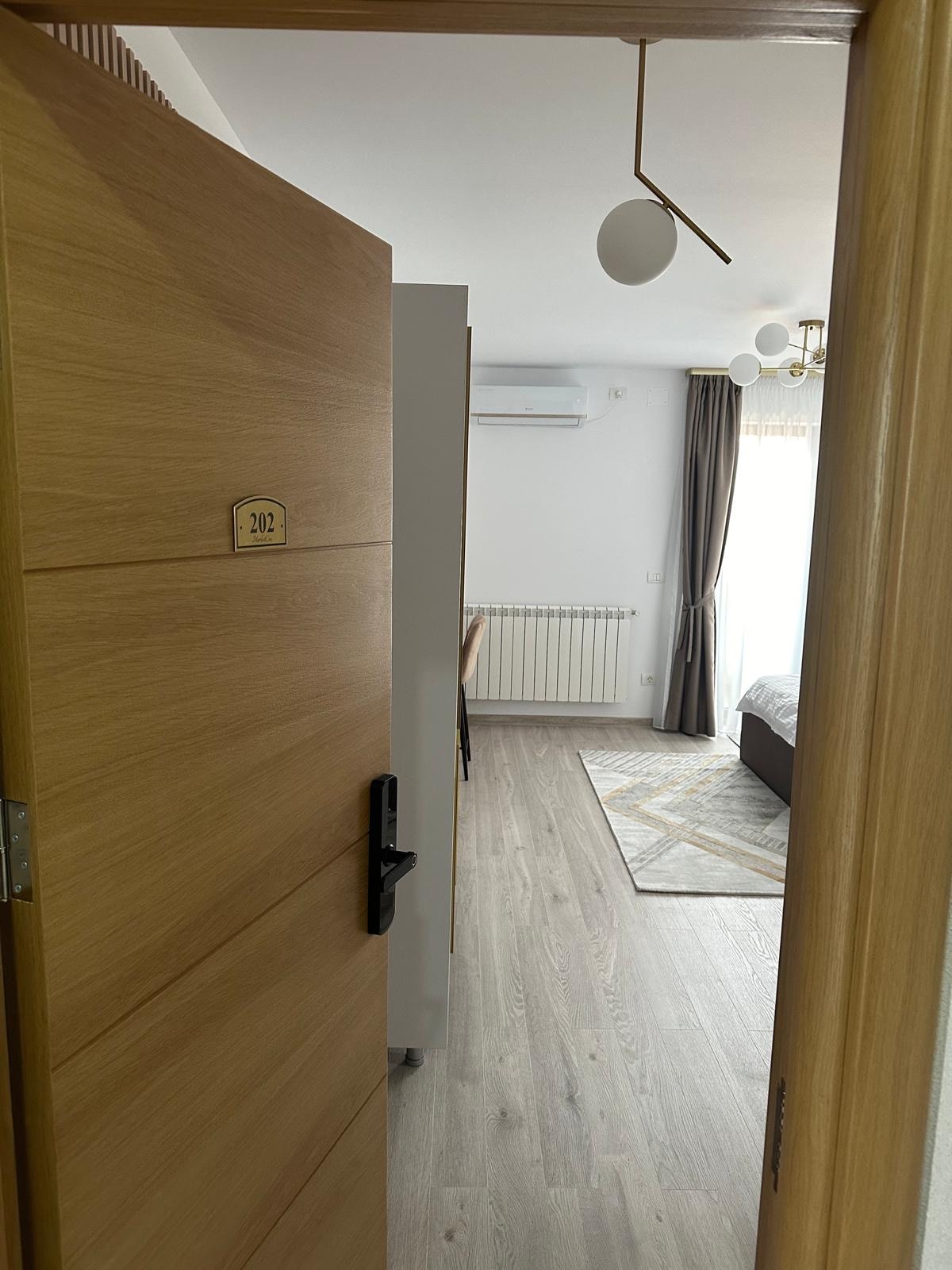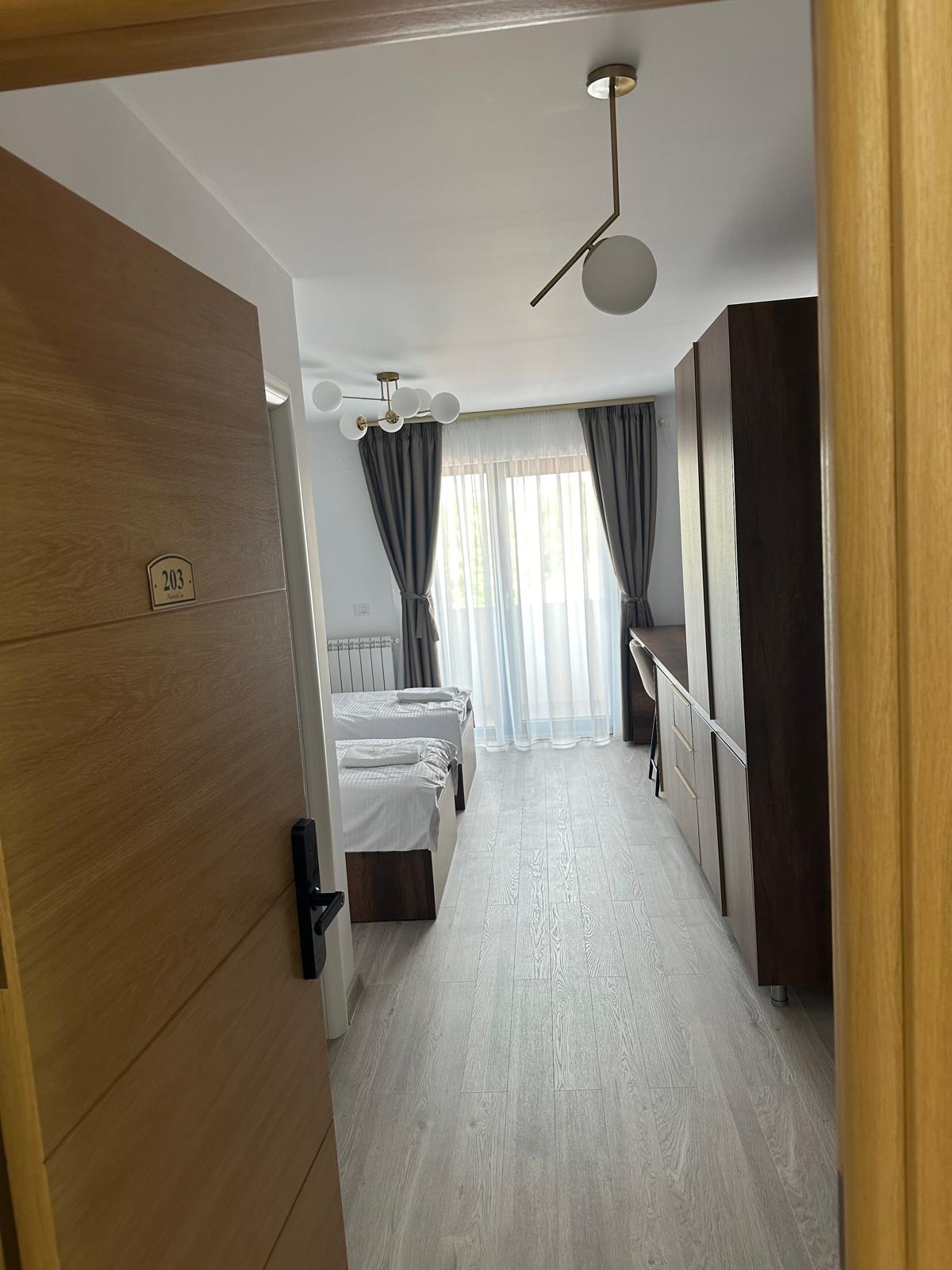 Cameră dublă modernă, cu baie privată, aer condiționat și toate facilitățile pentru un sejur confortabil. Situată într-o clădire tip pensiune, camera oferă WiFi rapid, TV și parcare privată – ideală pentru cupluri sau călători în interes de serviciu.