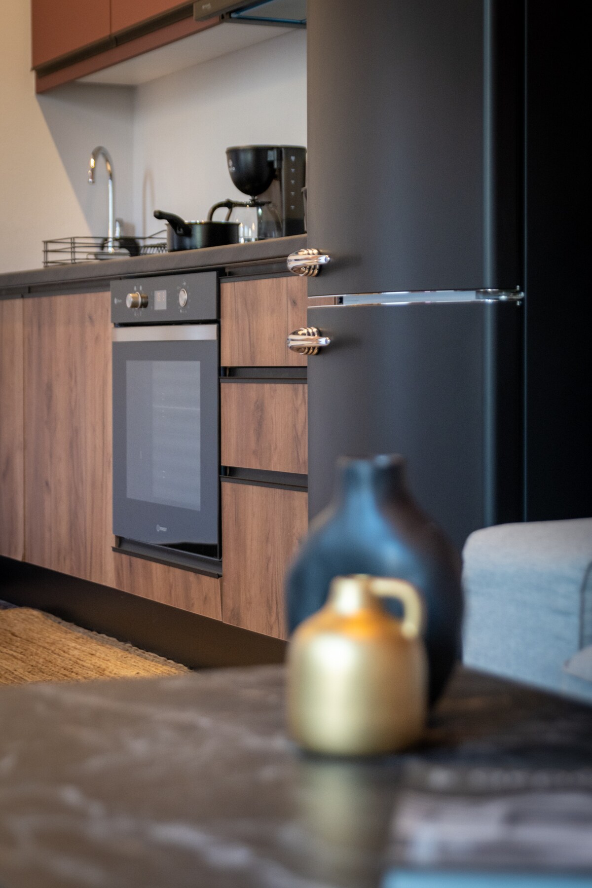 Pleasant accommodation in a residential complex. A renovated (2018) apartment drowned in a cretan garden full of olive trees, lemon trees, carob trees, cypresses, scents and bird ticks. A quite, bohemian, distinctive nest next to the sea for couples, families and even group of friends who seek the bliss of nature, 5 km from Agios Nikolaos.An attempt to overcome the dividing line between indoor and natural environments and reconcile the Greek tradition with modernism and comfort