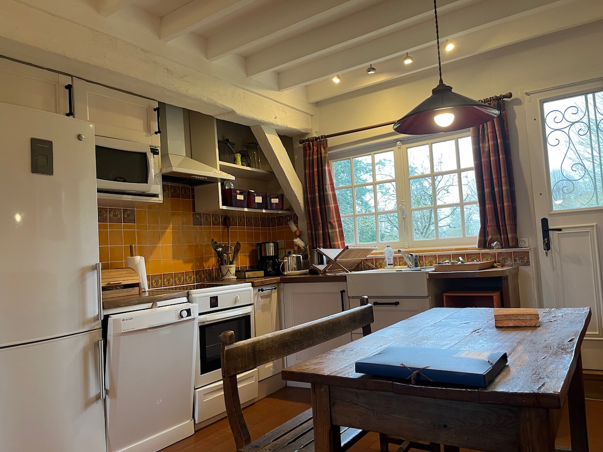 Parfait pour se retrouver en famille ou entre amis, deux maisons d'hôtes entièrement rénovées et situées dans un joli parc de verdure vous attendent. La "suite mezzanine" a deux lits doubles, une cuisine équipée et une grande table pour 8 personnes, le "cottage atelier" se situe à 50 mètres et permet de loger 4 adultes et 1 enfant. Grand jardin, barbecue et four à pain. En option, un petit-déjeuner buffet ou un brunch vous seront servis (à réserver à l'avance, tarif sur demande).